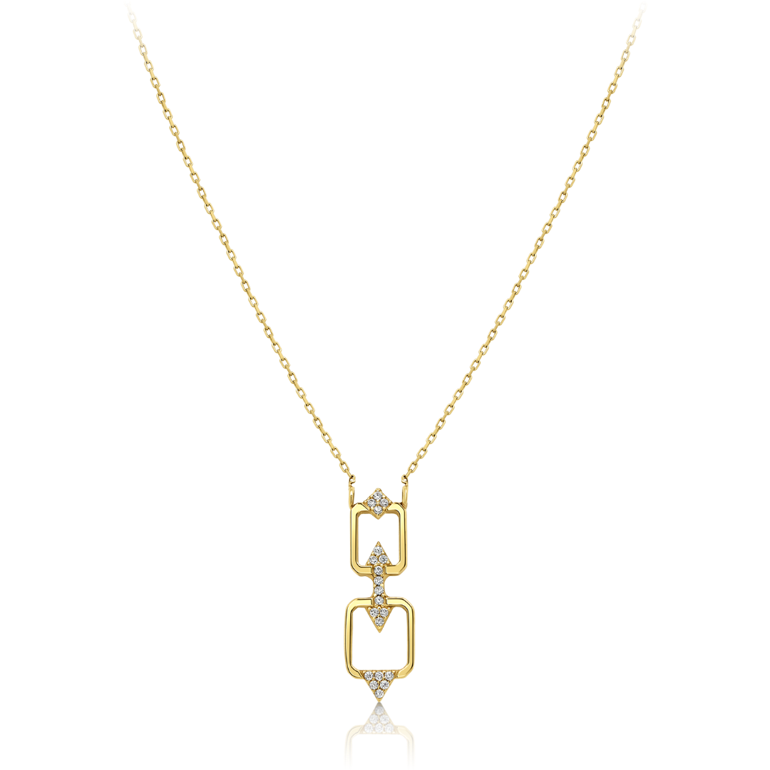 Lanț din aur galben de 14K și pandantiv cu zirconii incolore.