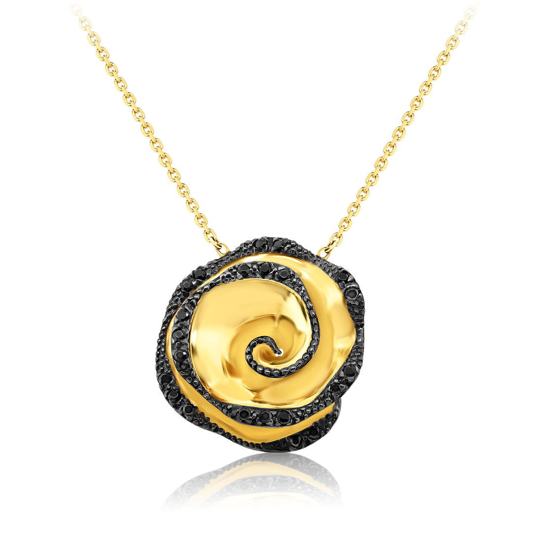 Lanț din aur galben de 14K și pandantiv cu zirconia negre.