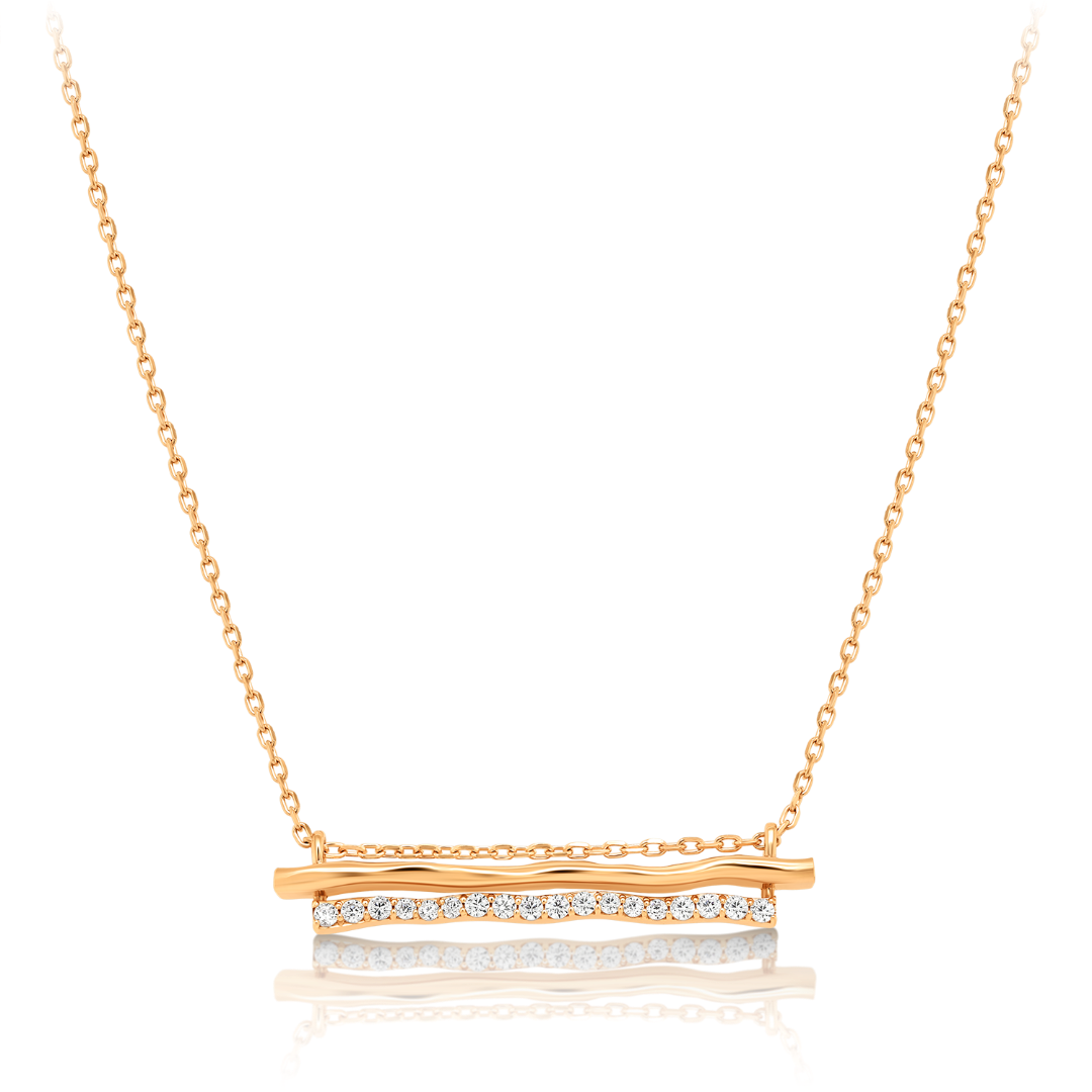 Lanț din aur roz de 14K și pandantiv cu pietre cubic zirconia.