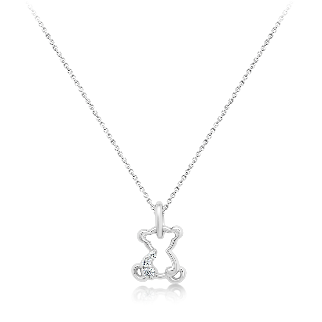 Lanț din aur alb de 14K și pandantiv ursuleț cu pietre cubic zirconia incolore.