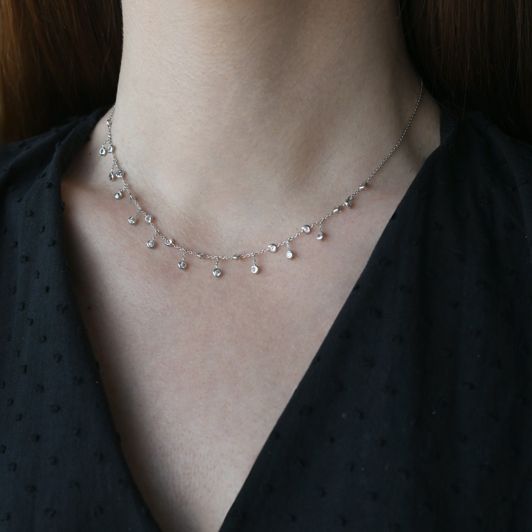 Lanț cu pandantive din aur alb de 14K și pietre cubic zirconia.