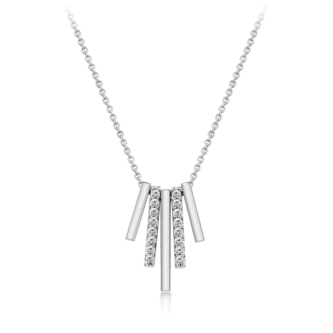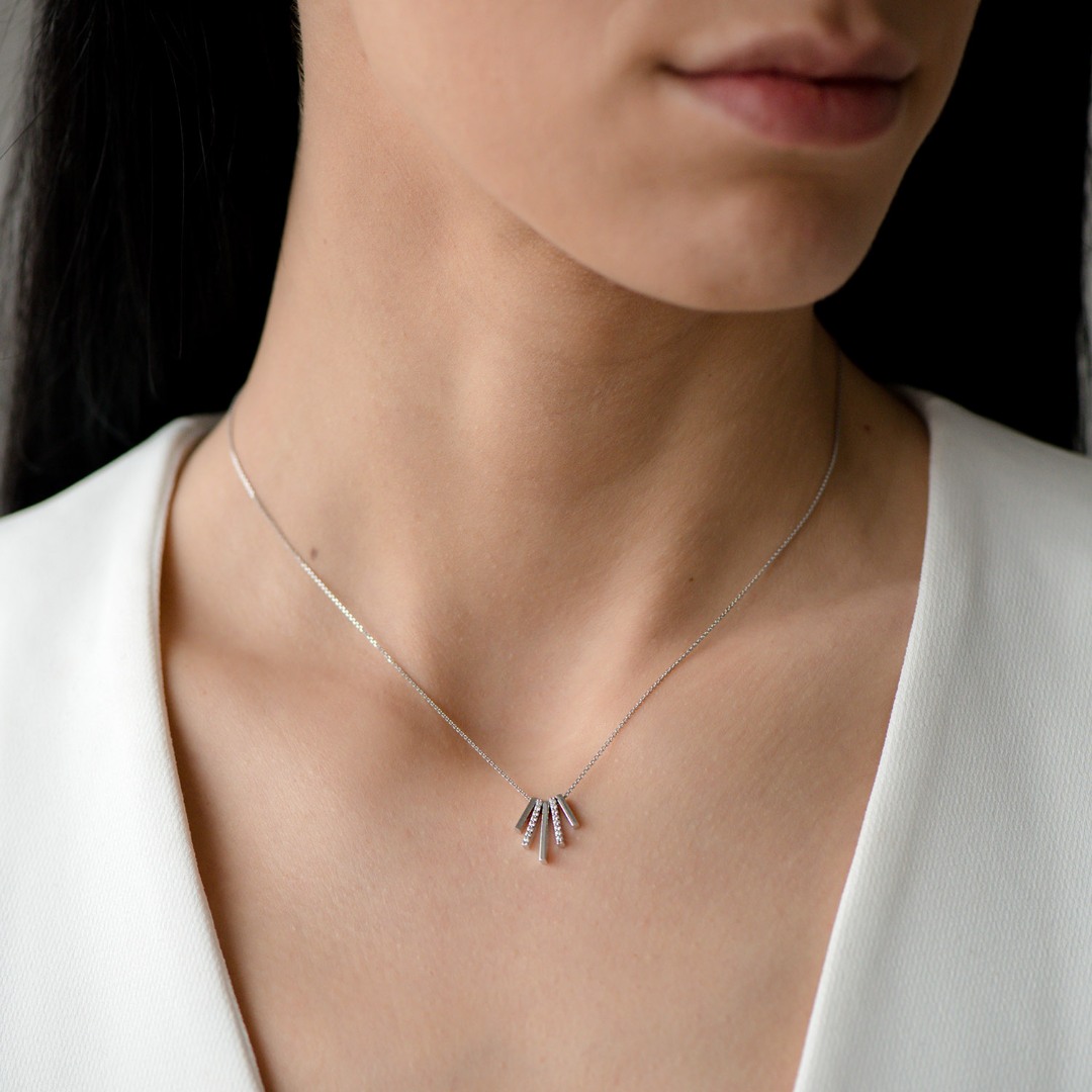 Lanț din aur alb de 14K cu pandantive și pietre cubic zirconia.