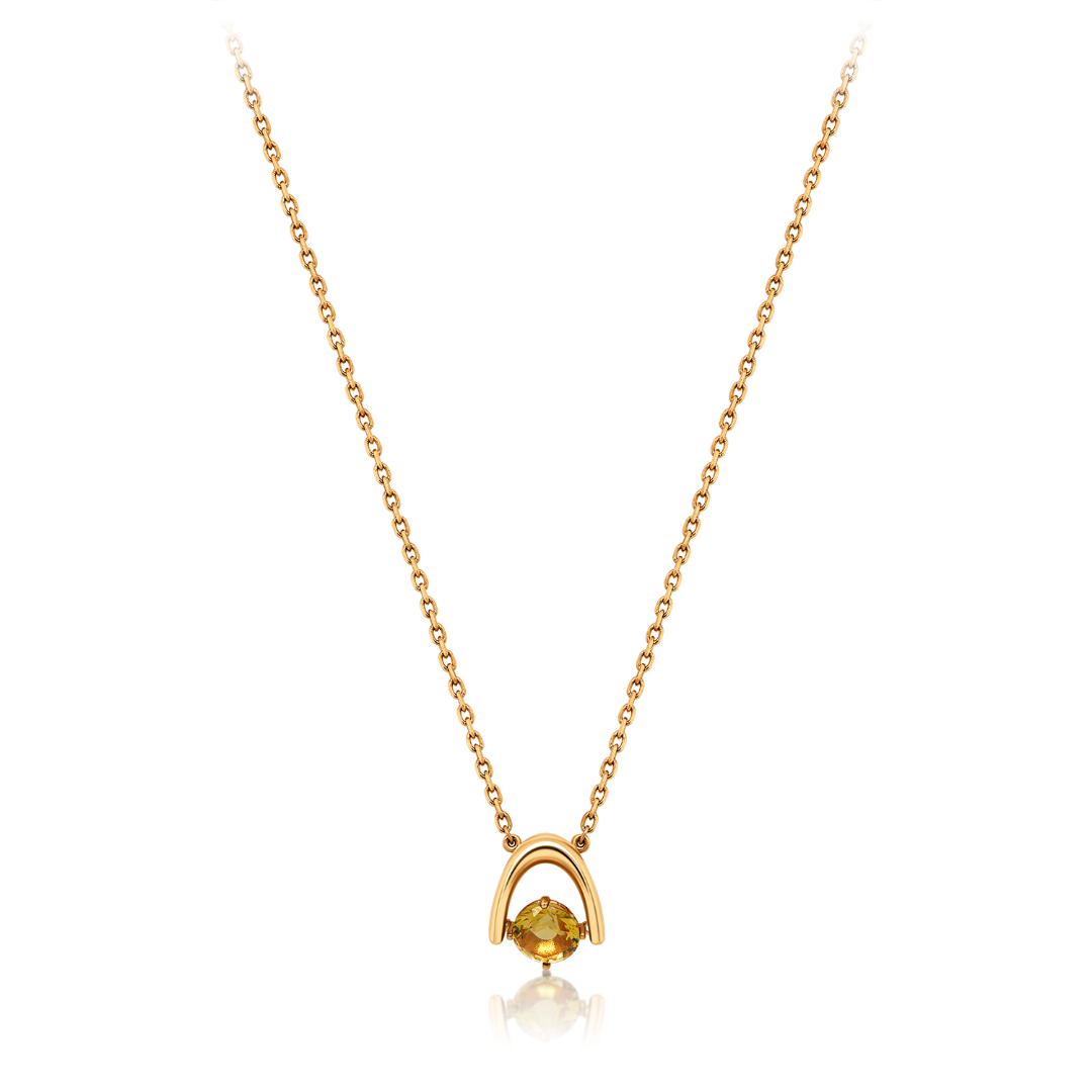 Lanț din aur roz de 14K și pandantiv cu piatră Cubic Zirconia portocalie.