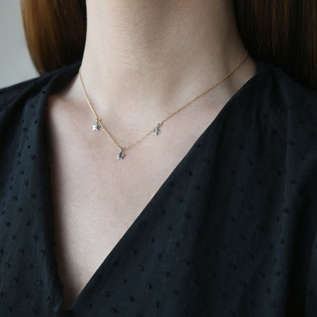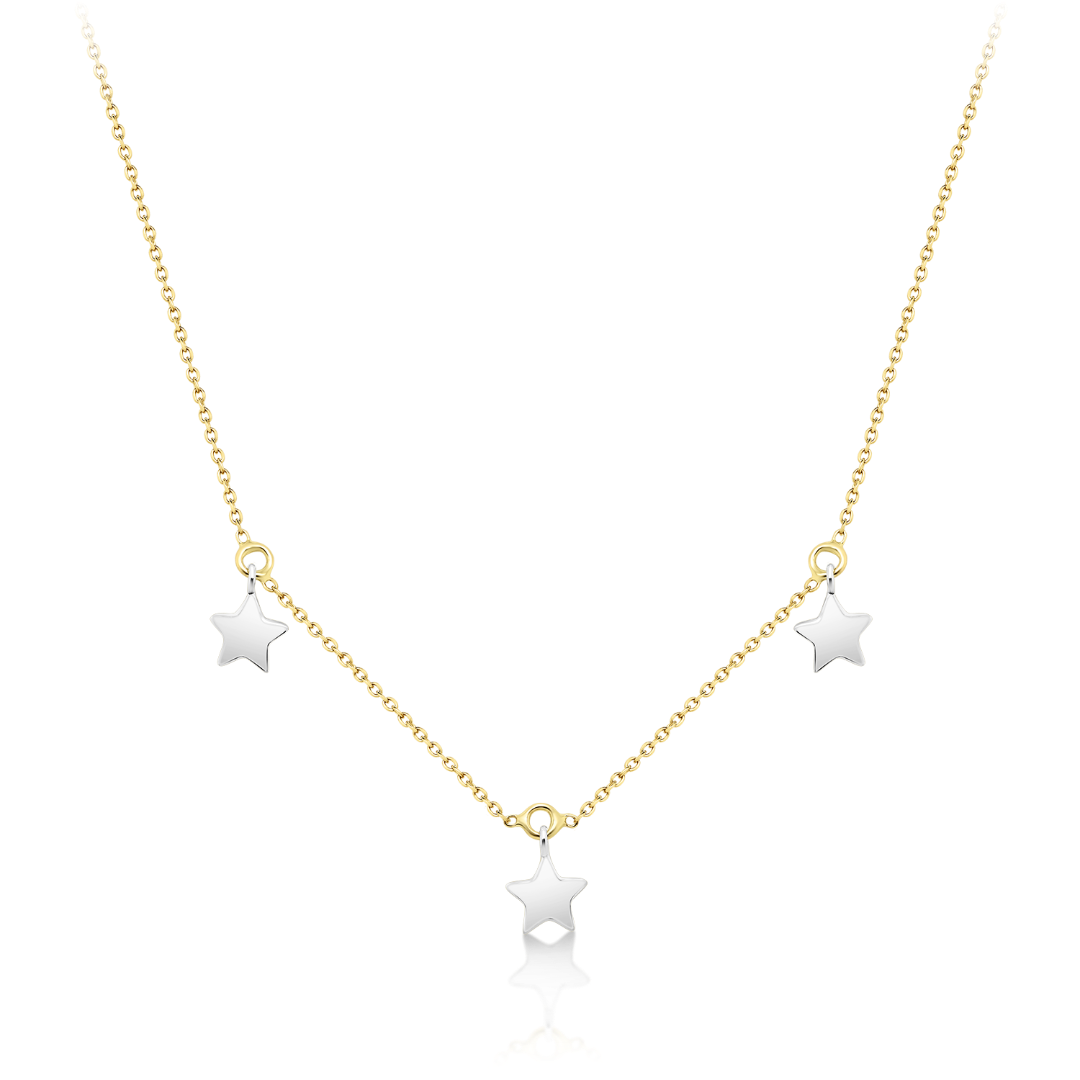 Lanț din aur galben de 14K cu pandantive stea din aur alb.