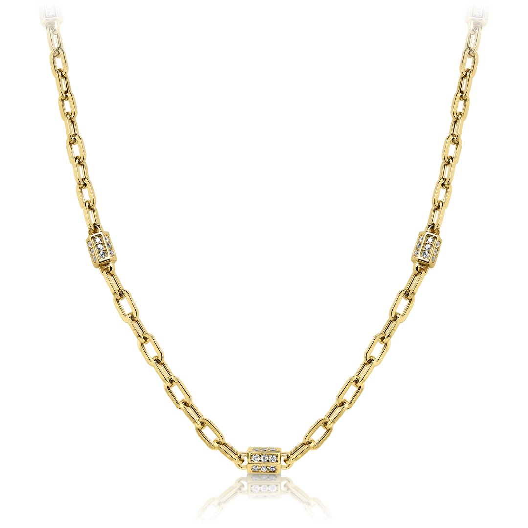 Lanț din aur galben de 14K cu pietre cubic zirconia.