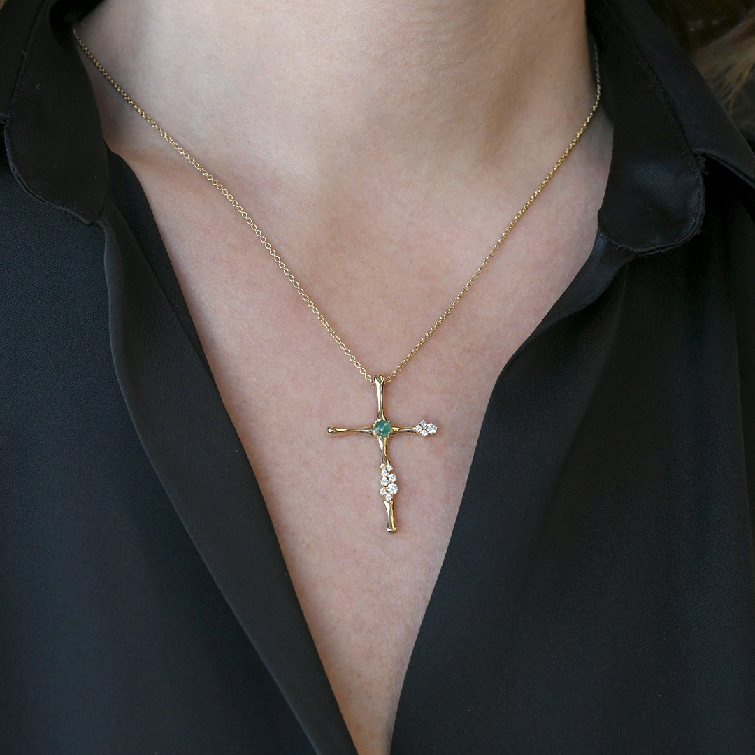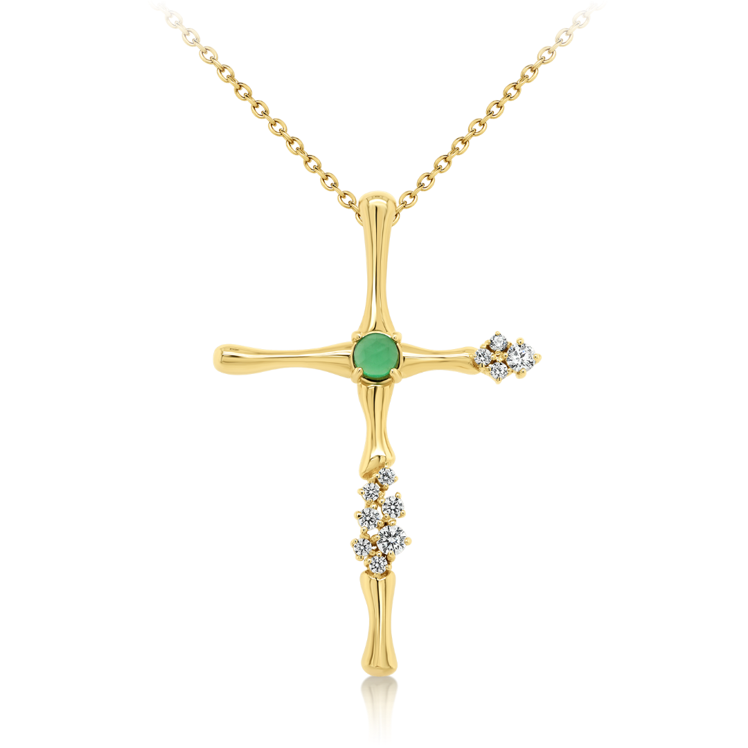 Lanț din aur galben de 14K și pandantiv cruce cu pietre cubic zirconia.