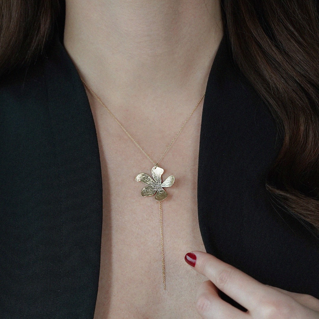 Lanț din aur galben de 14K și pandantiv cu efect satinat.