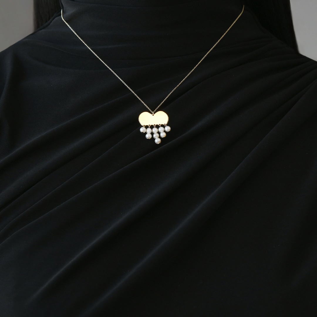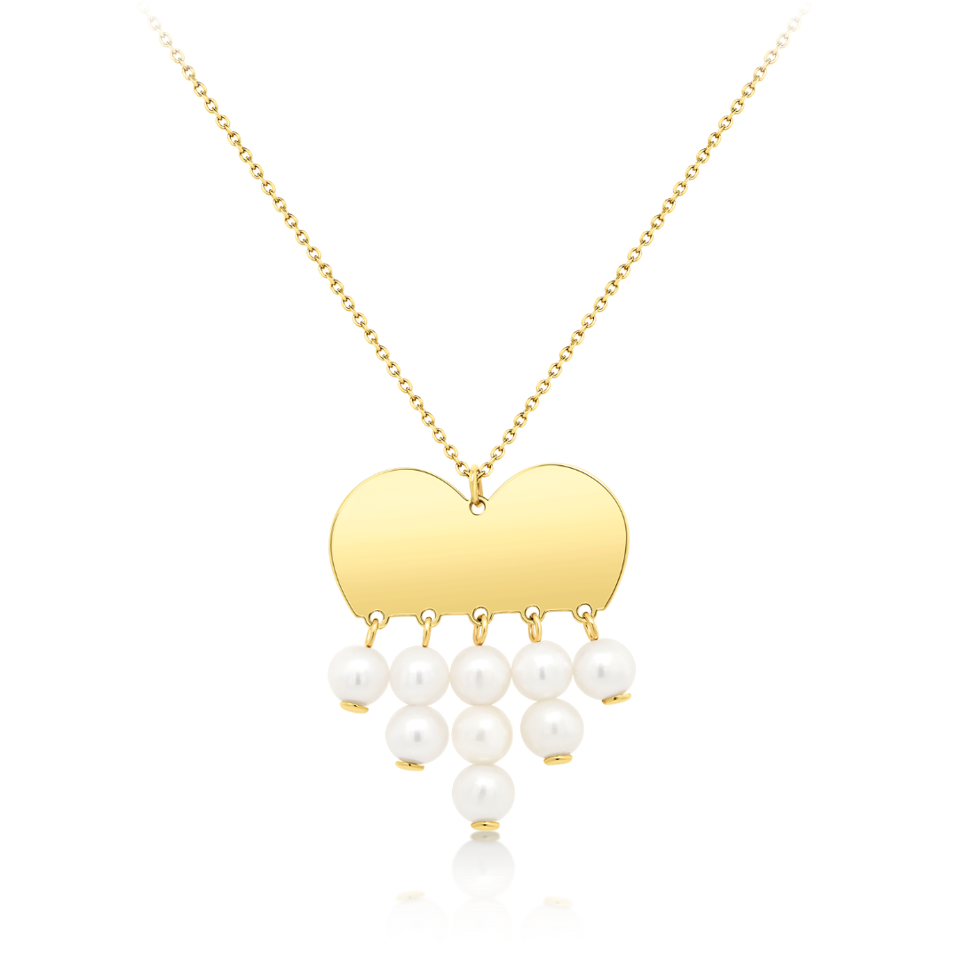 Lanț din aur galben de 14K și pandantiv cu Perle de cultură.