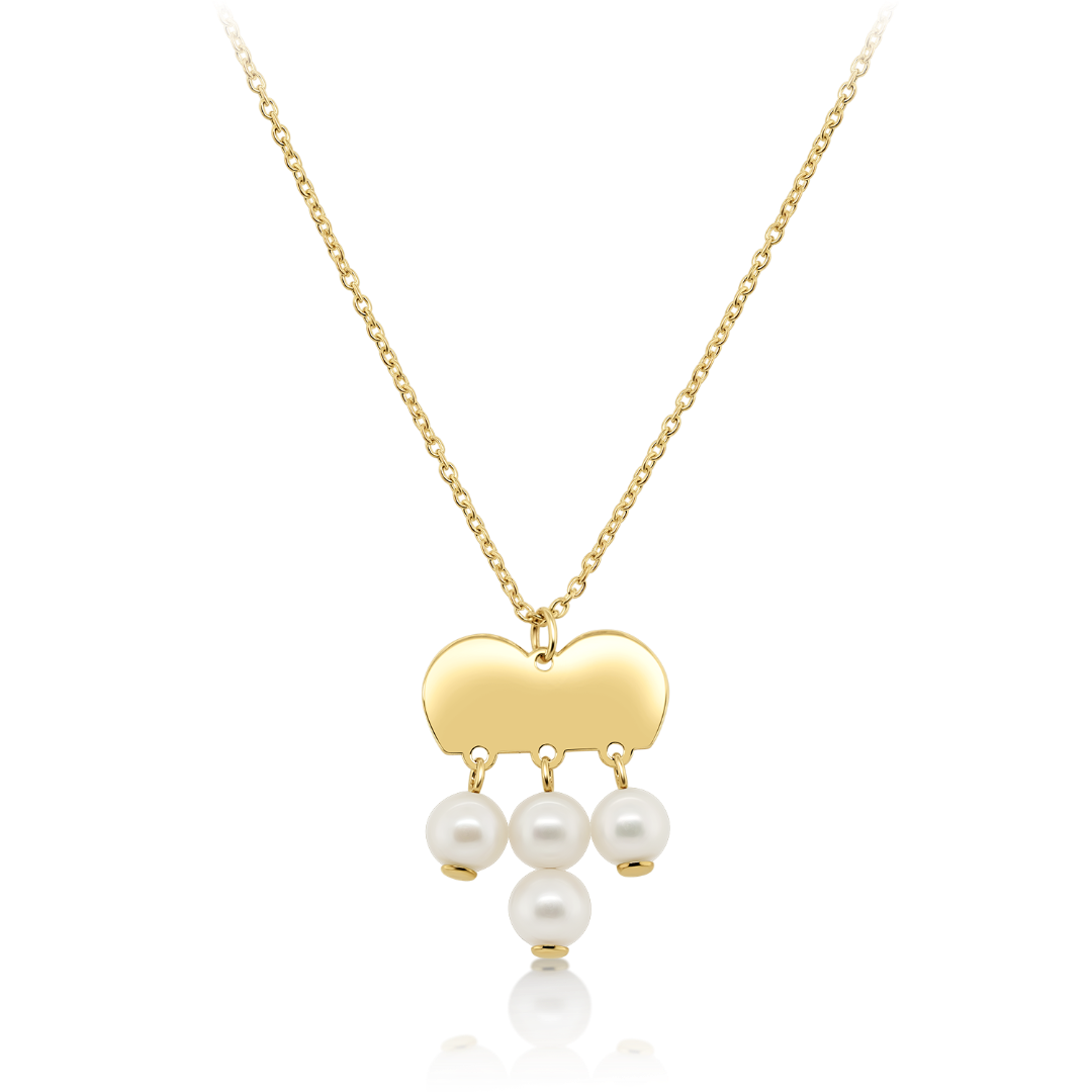 Lanț din aur galben de 14K și pandantiv inimă cu Perle albe de cultură.