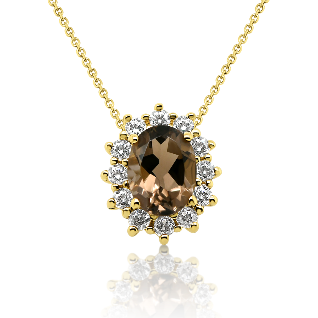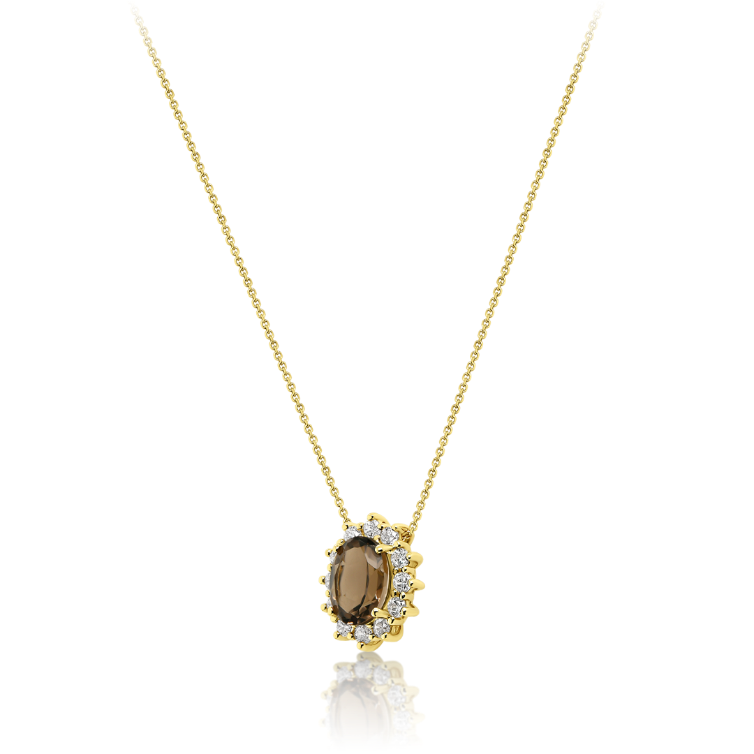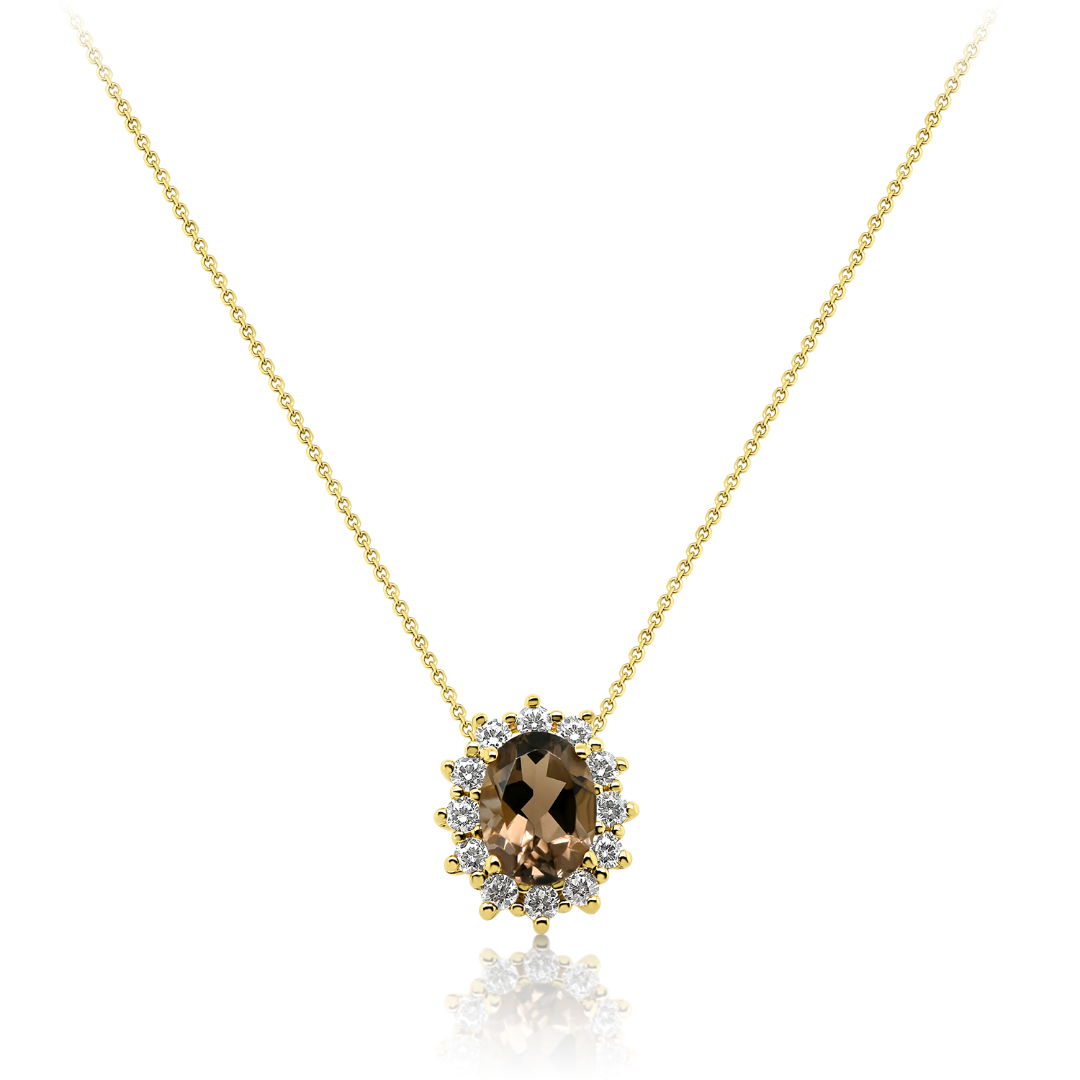 Lanț din aur galben de 14K și pandantiv cu Smoky Quartz și pietre cubic zirconia.