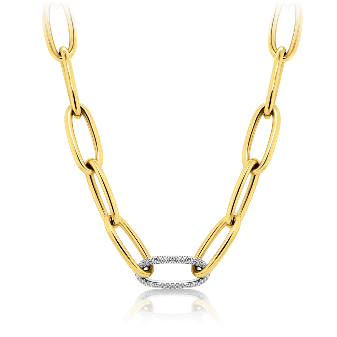 Lanț din aur galben de 14K și pandantiv încrustat cu 108 Diamante Round Brilliant cu o greutate totală de 1.40ct.