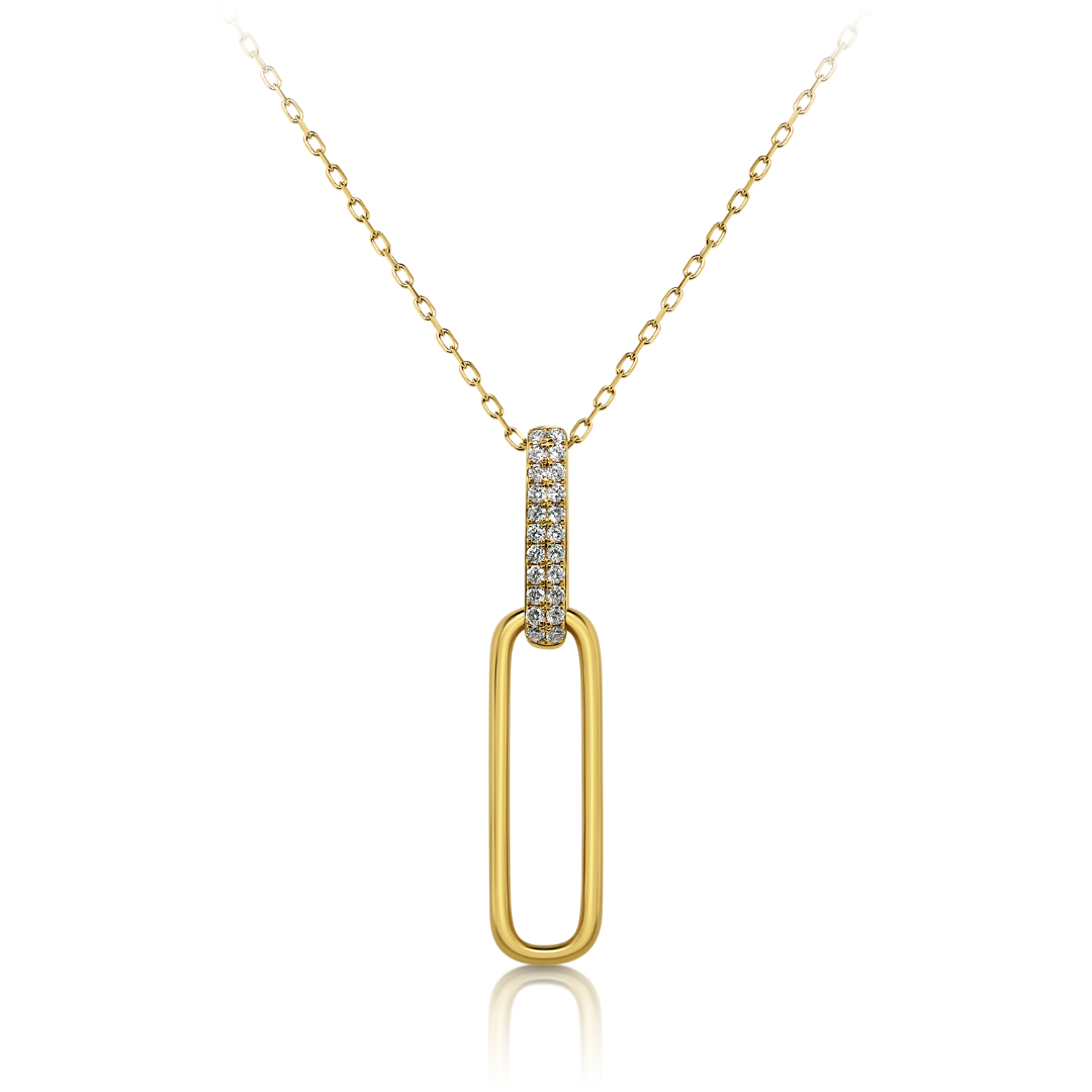 Lanț din aur galben de 18K și pandantiv încrustat cu 22 de Diamante cu o greutate totală de 0.16ct.