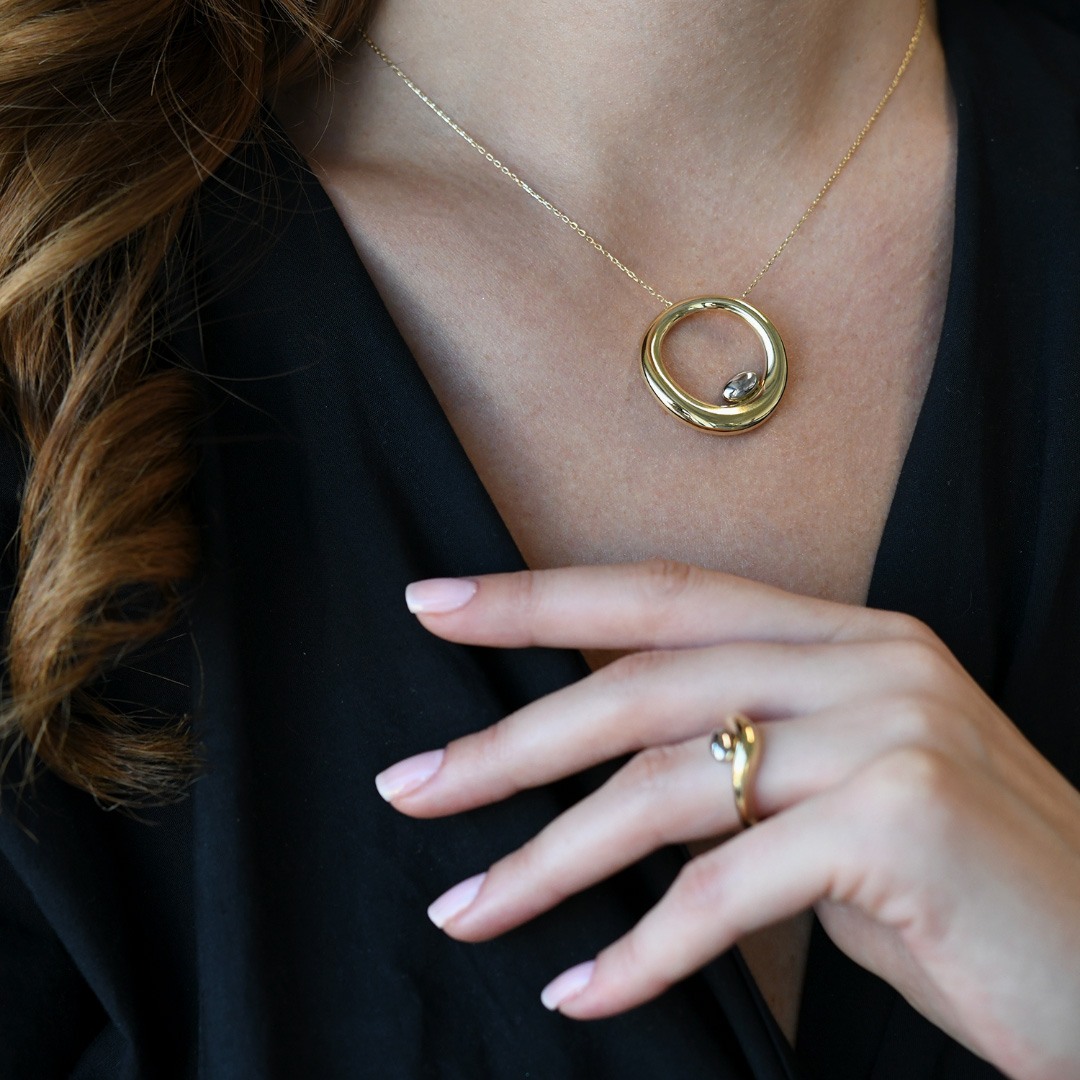 Lanț din aur galben de 18K și pandantiv cu element din aur alb.