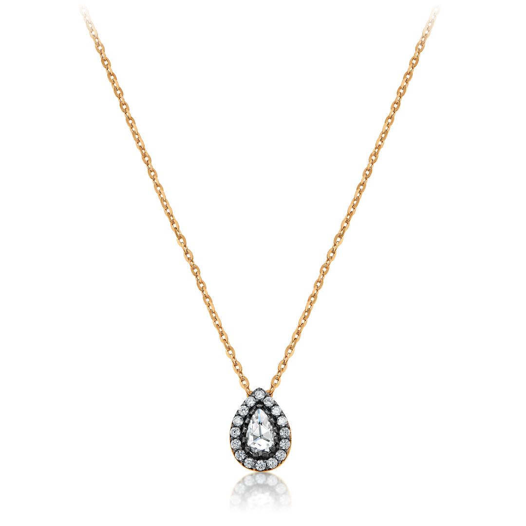 Lanț cu pandantiv din aur roz de 14K și pietre cubic zirconia.