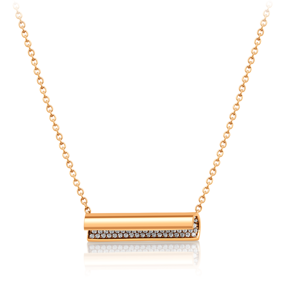 Lanț din aur roz de 14K și pandantiv cu pietre cubic zirconia.