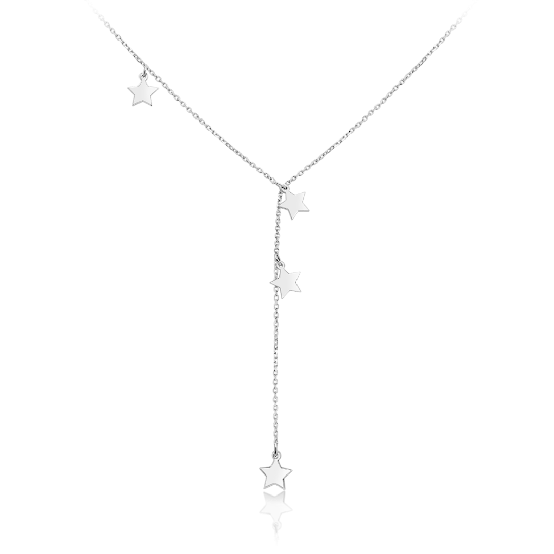 Lanț reglabil din aur alb de 14K cu pandantive în formă de stea.