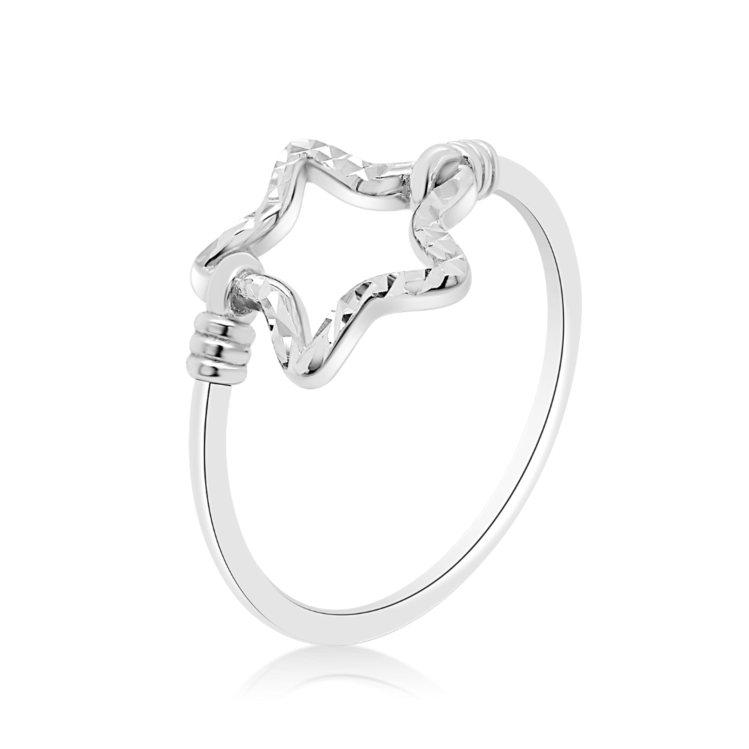 Inel cu element fațetat în formă de stea din aur alb de 14K.