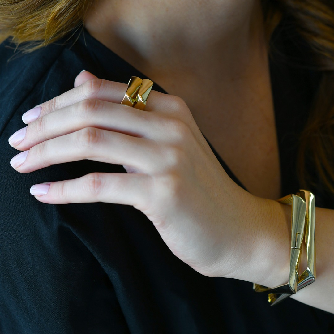 Inel cu design geometric din aur galben de 18K.