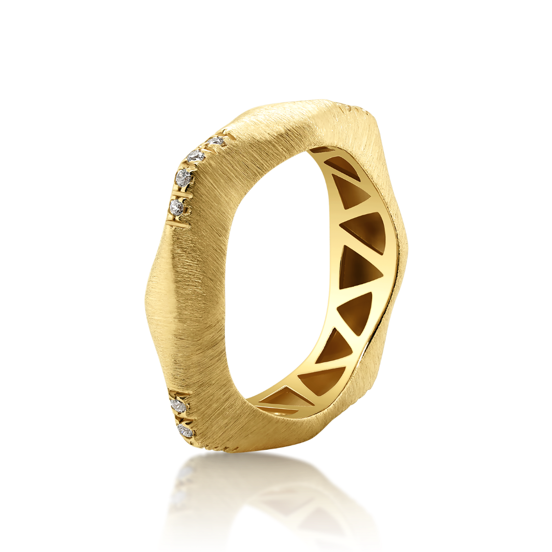 Inel cu efect satinat din aur galben de 14K și zirconii incolore.
