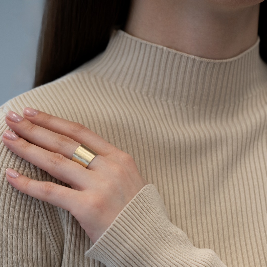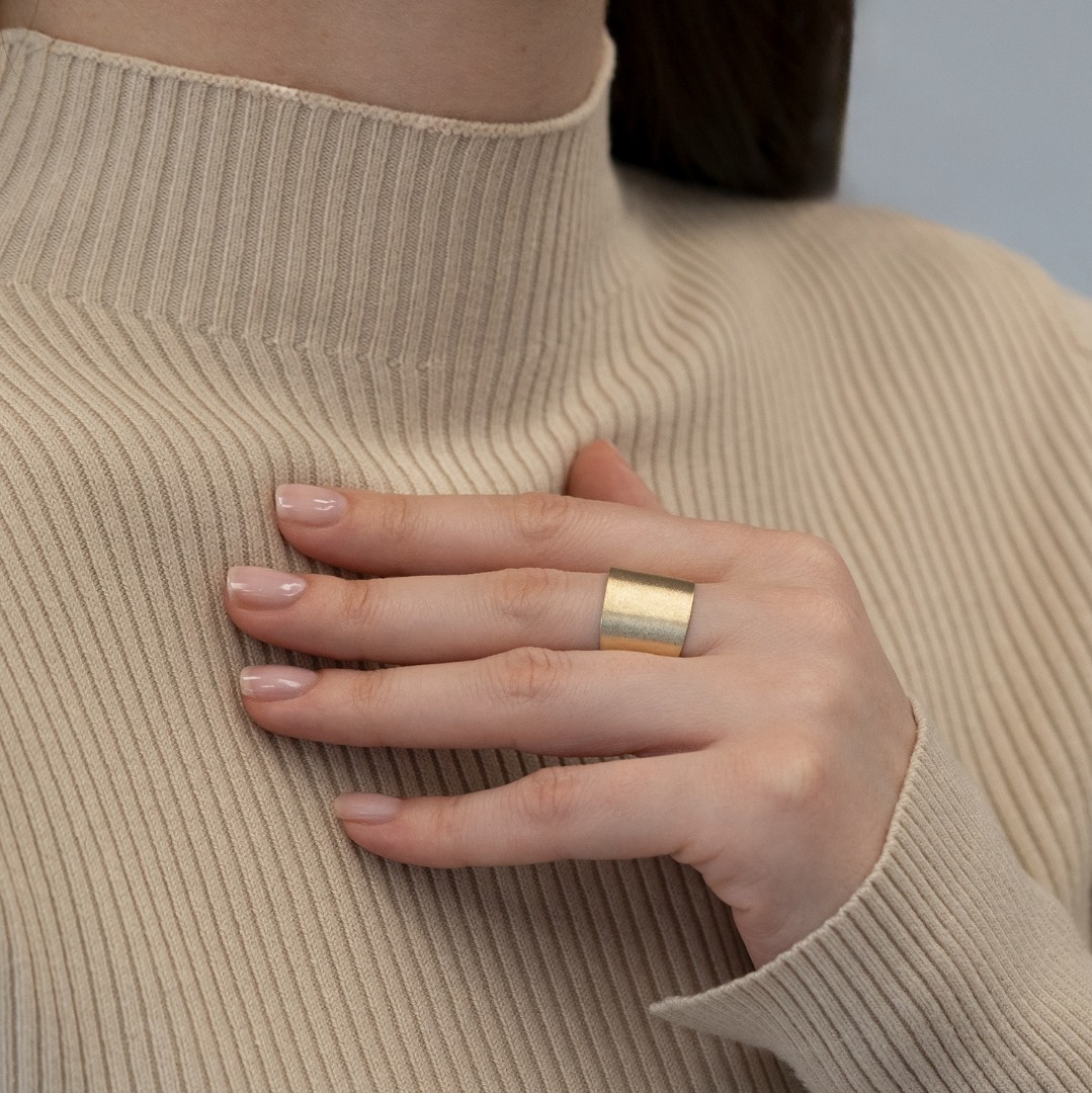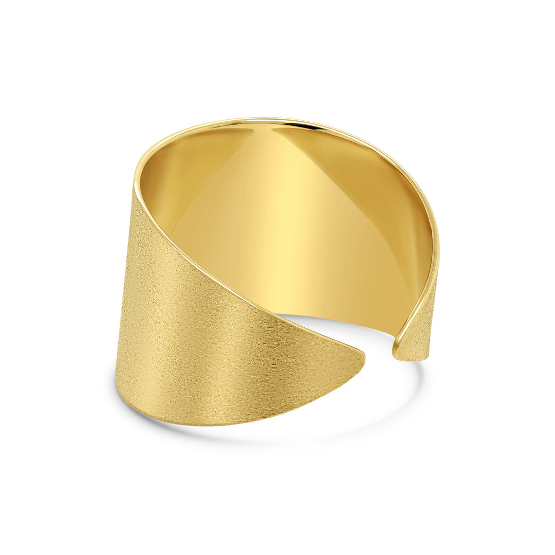 Inel realizat din aur galben de 14K. Designul său modern și finisajul mat satinat, îl face potrivit atât pentru purtare zilnică, cât și pentru ocazii speciale.