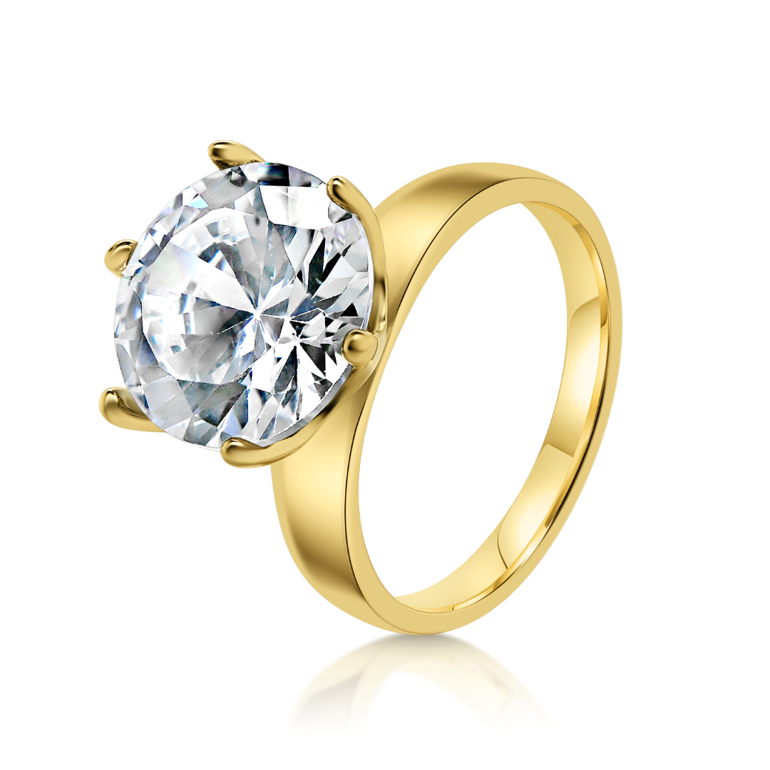 Inel de logodnă din aur galben de 14K cu piatră cubic zirconia.