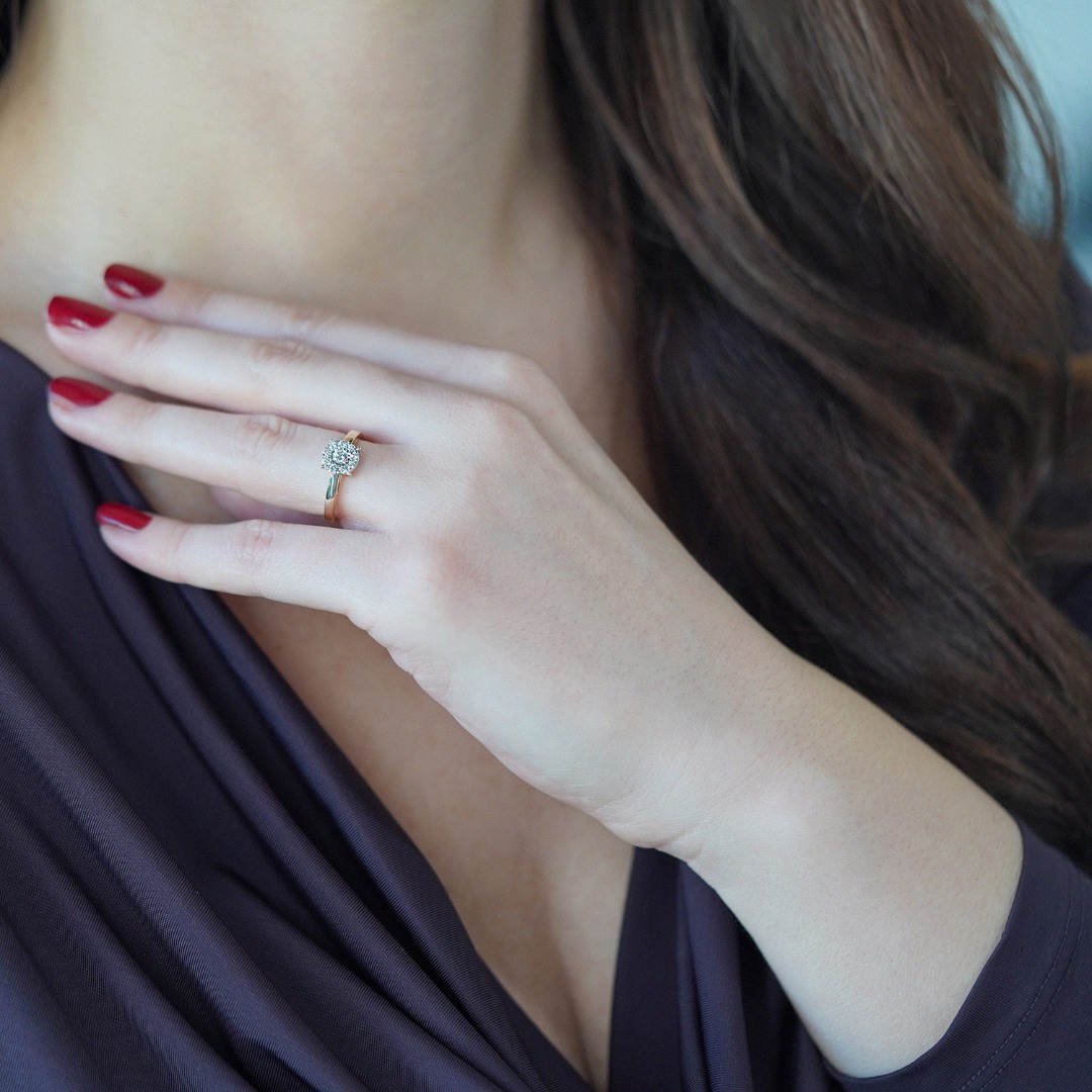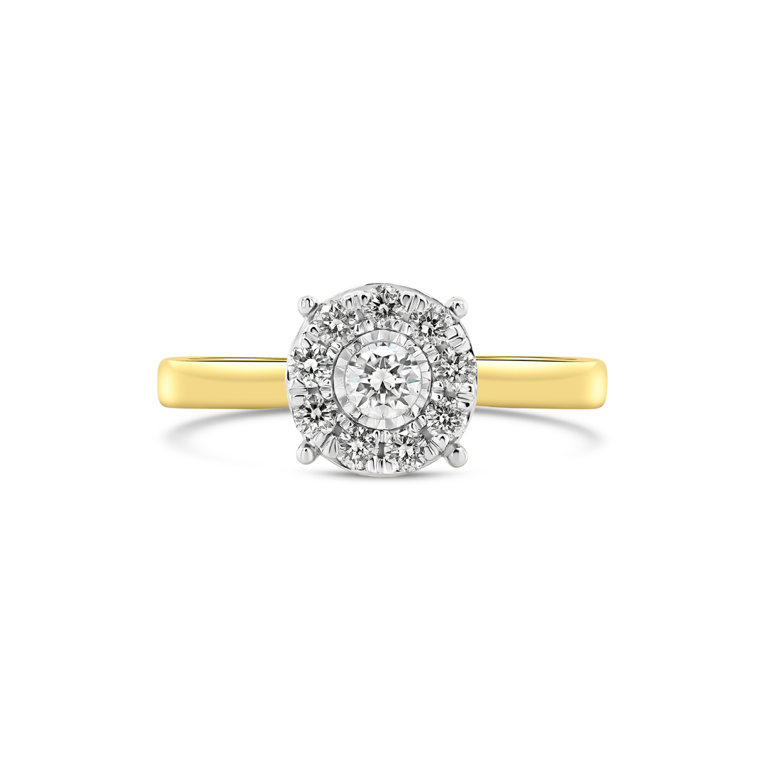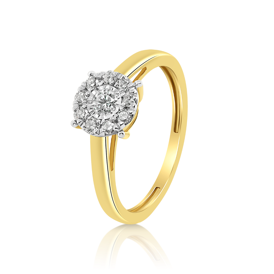 Inel de logodnă din aur galben de 14K cu Diamante naturale brilliant cut de 0.25ct.