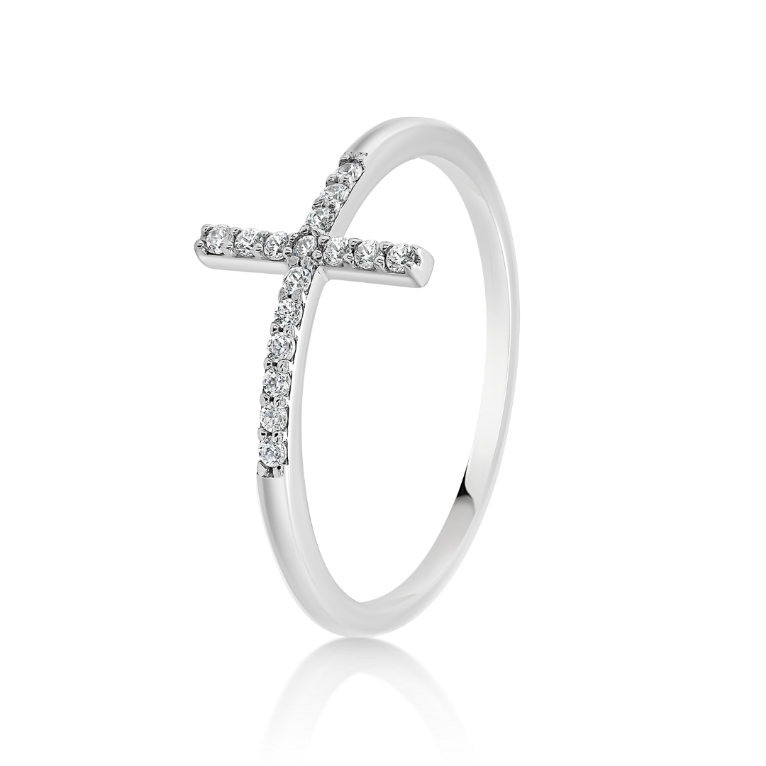 Inel din aur alb de 14K cu pietre cubic zirconia.
