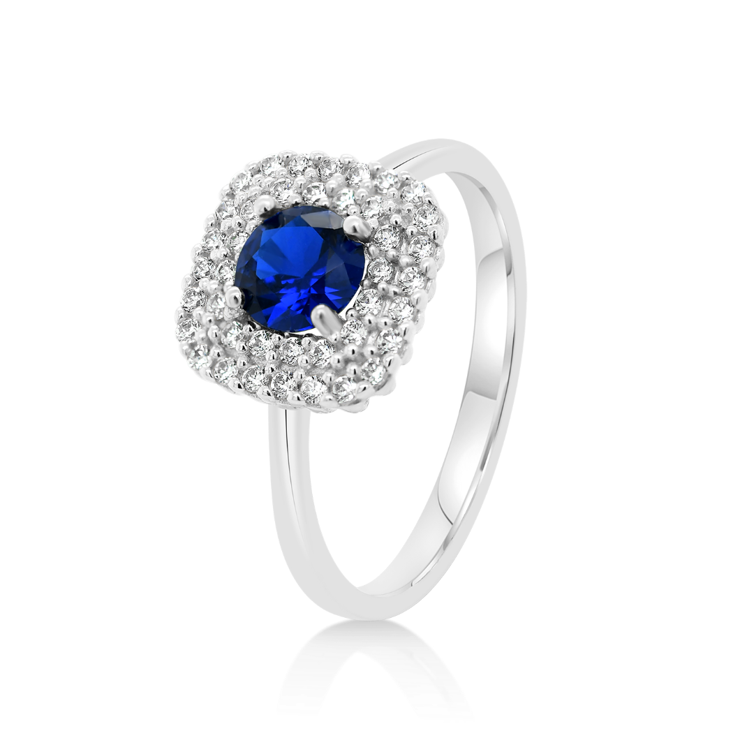 Inel din aur alb de 14K cu pietre cubic zirconia.