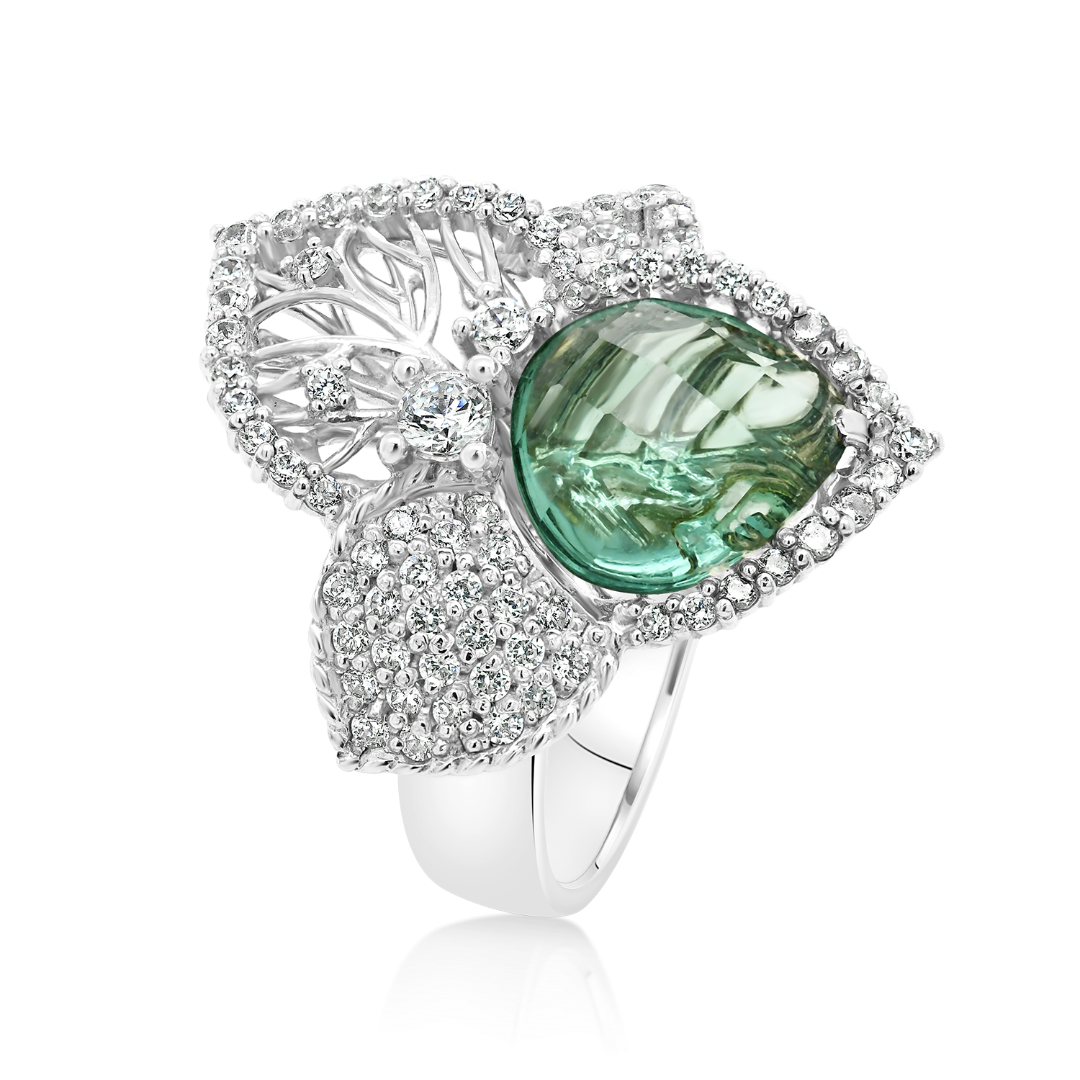 Inel din aur alb de 14K cu pietre cubic zirconia.