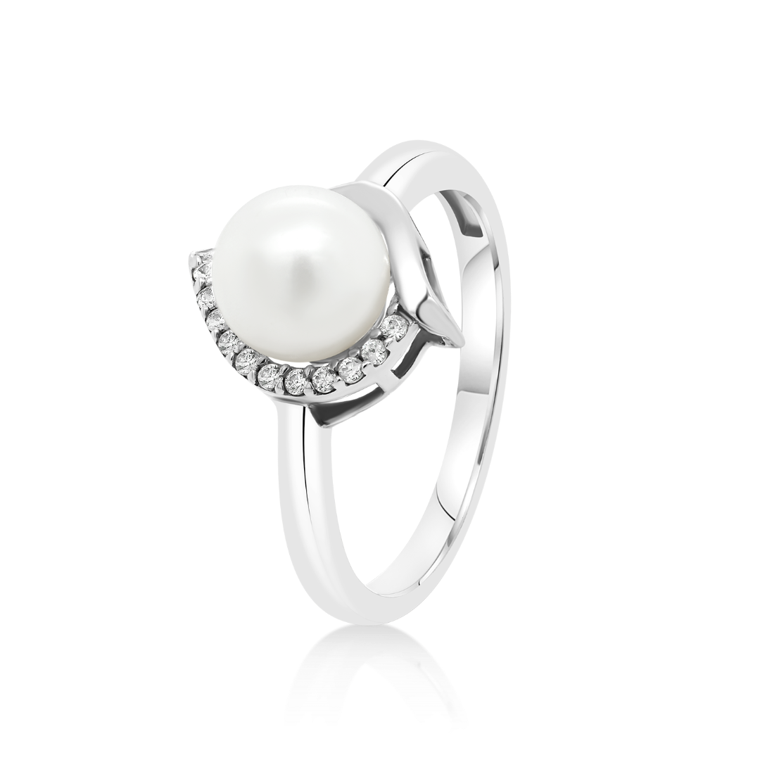 Inel din aur alb de 14K cu Perlă de cultură și pietre cubic zirconia.