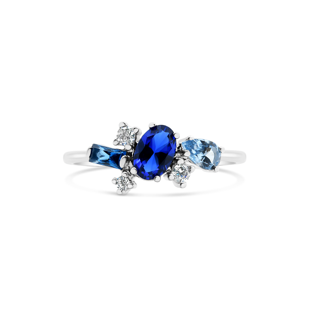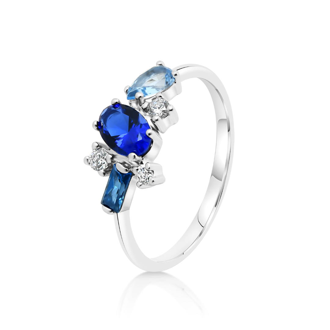 Inel din aur alb de 14K cu pietre cubic zirconia colorate și incolore.