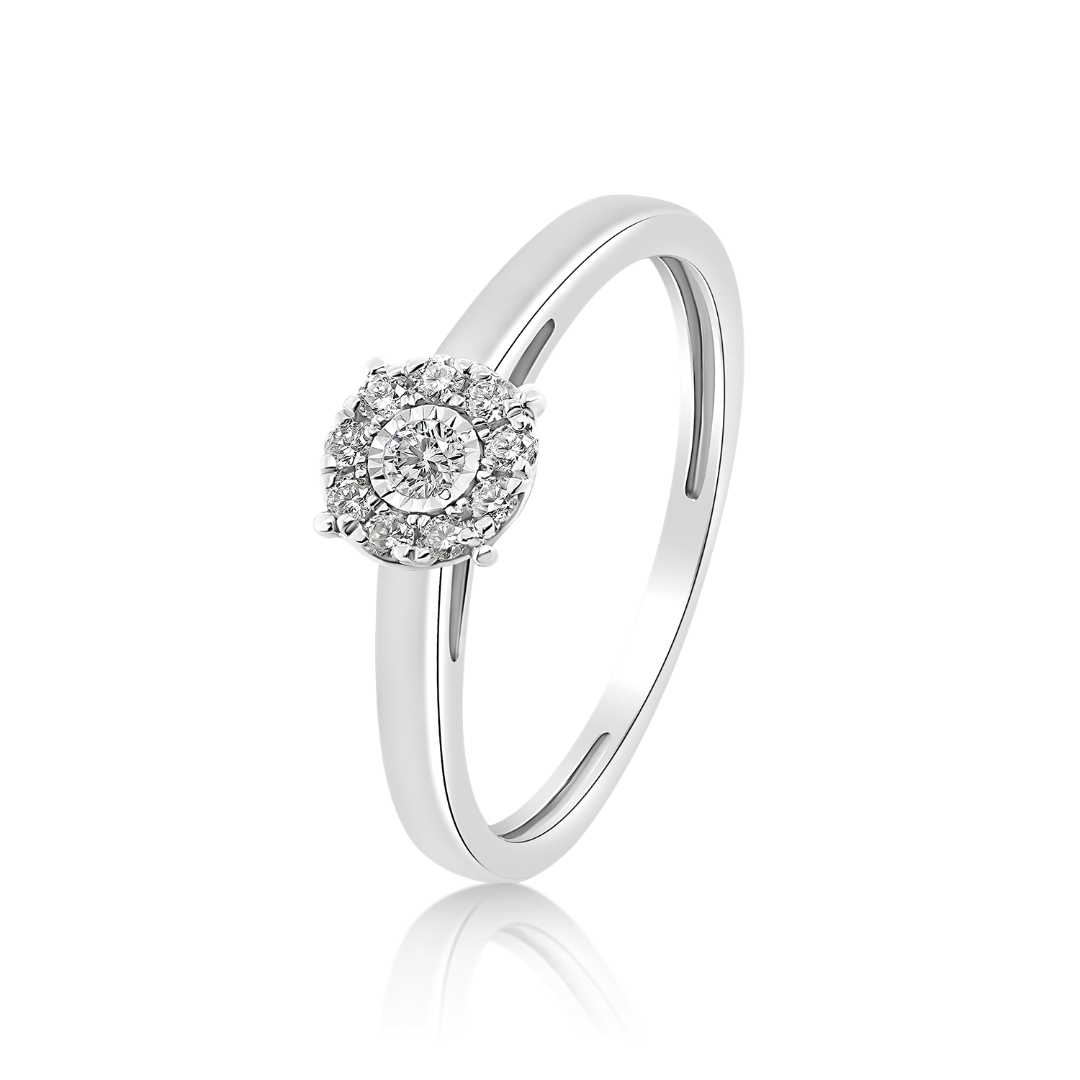 Inel de logodnă din aur alb de 14K cu Diamante naturale briliant cut de 0.10ct.