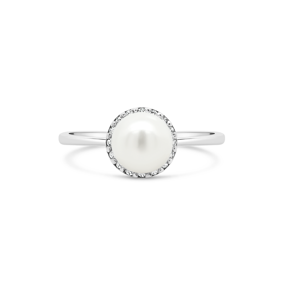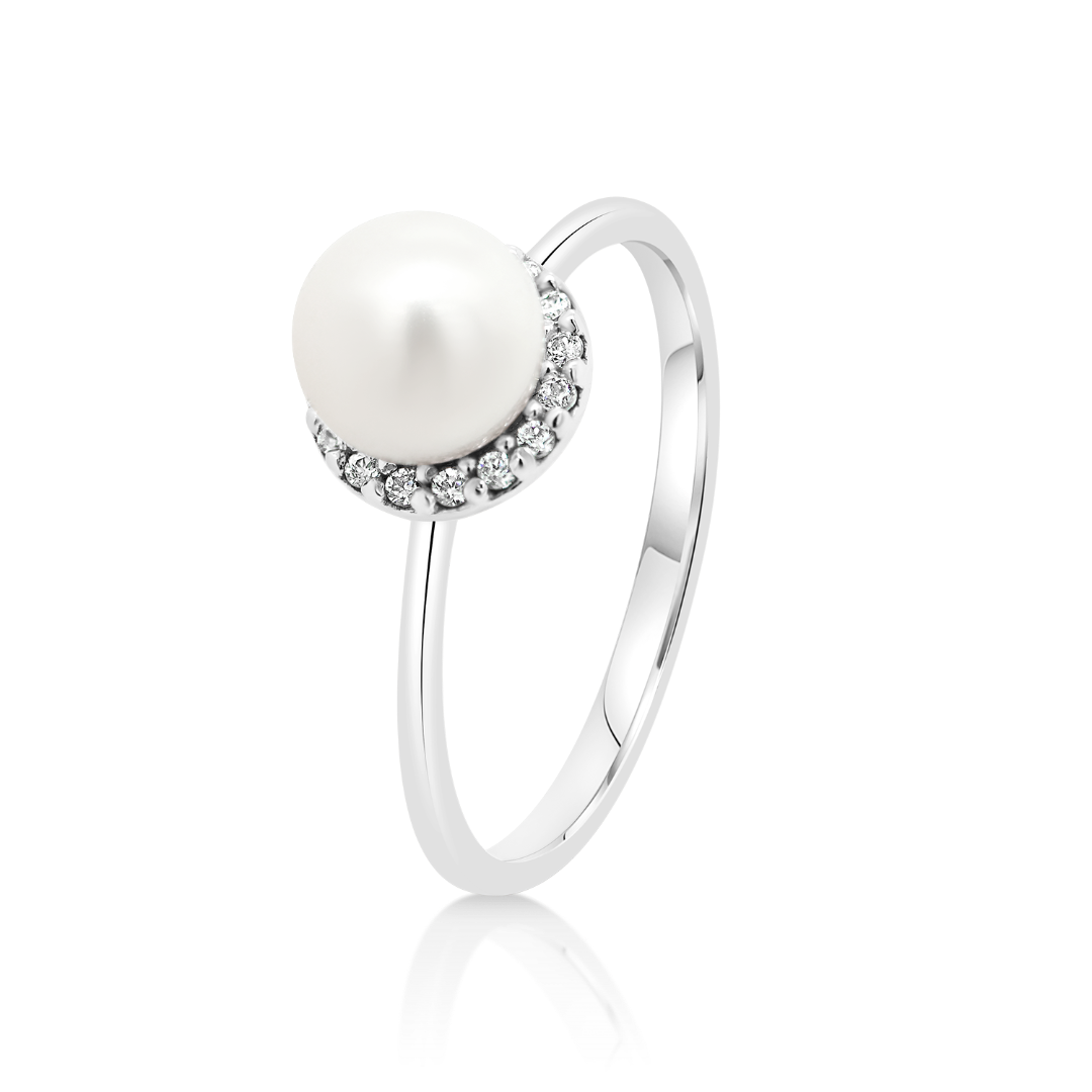 Inel din aur alb de 14K cu Perlă de cultură și pietre cubic zirconia.