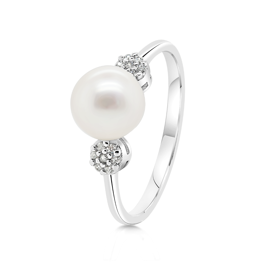 Inel din aur alb de 14K, cu pietre cubic zirconia și Perlă de cultură.
