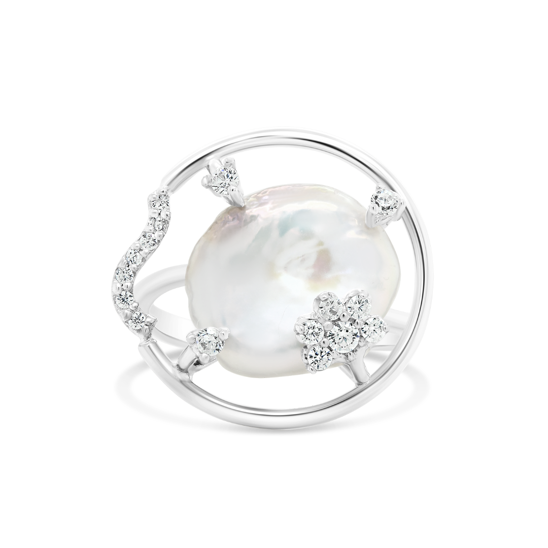 Inel din aur alb de 14K cu Sidef şi pietre cubic zirconia.