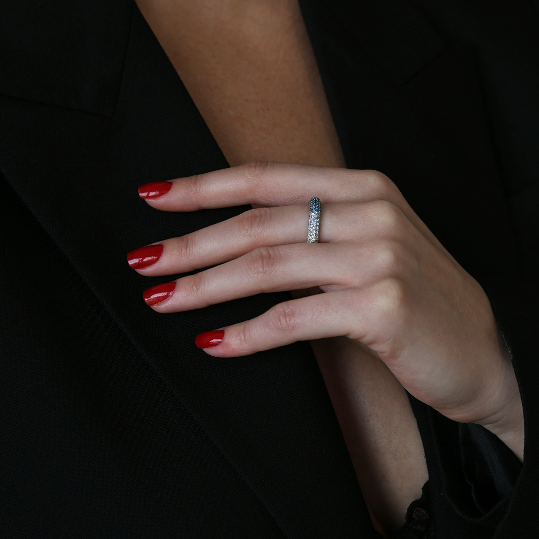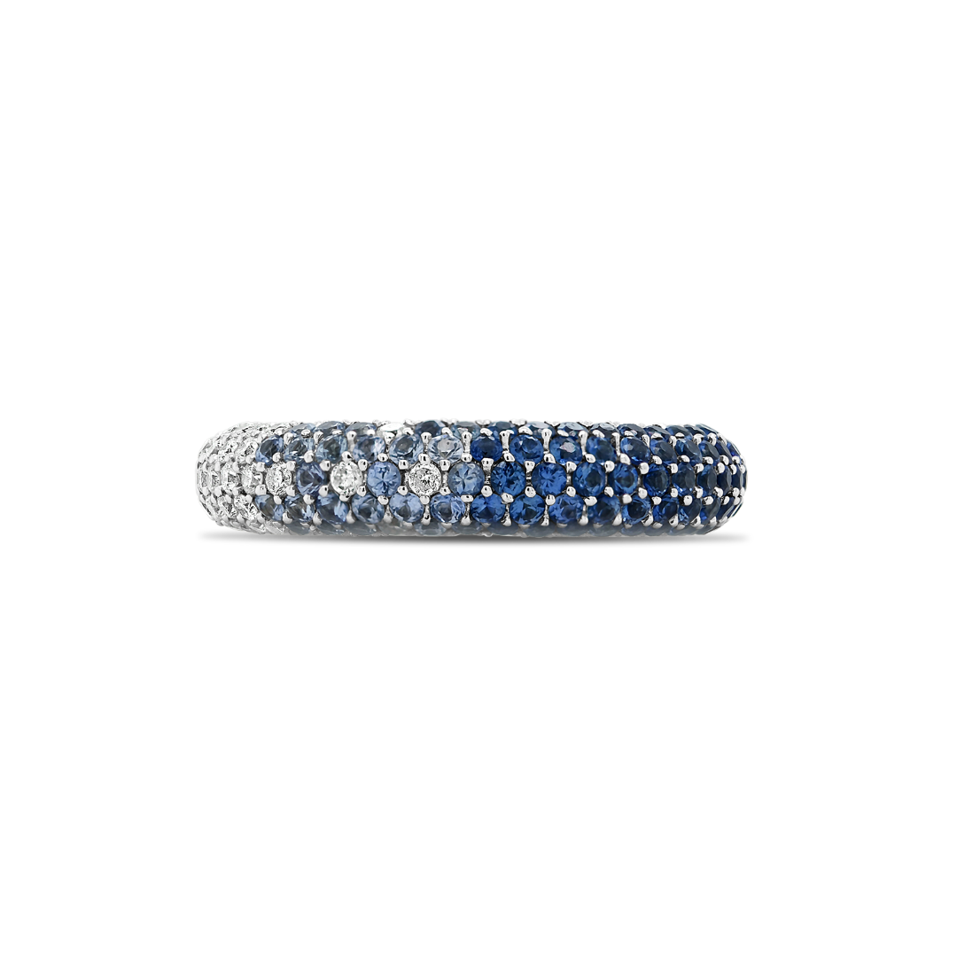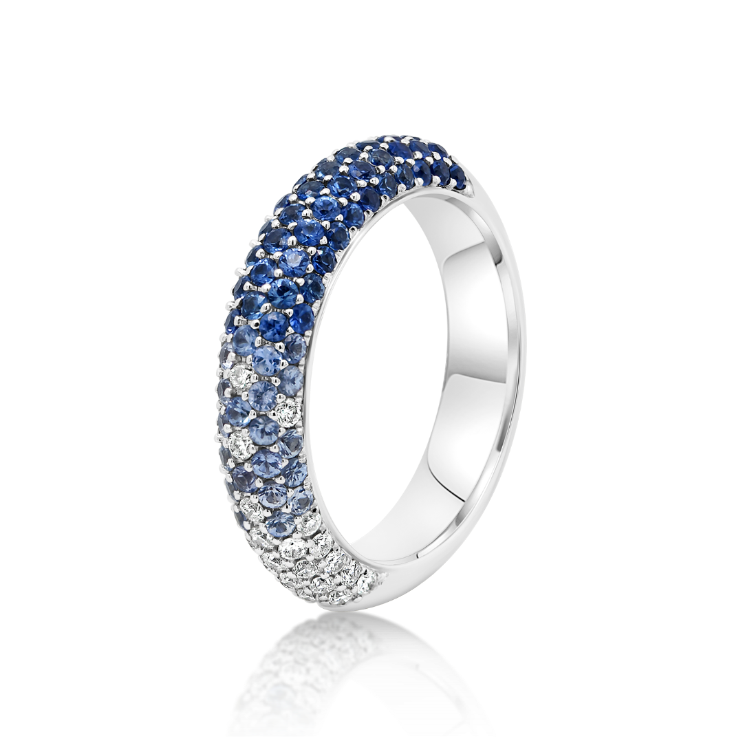 Inel din aur alb de 18K cu 27 de Diamante naturale Round Brilliant de 0.25ct. și 79 de Safire albastre cu o greutate totală de 1.04ct.