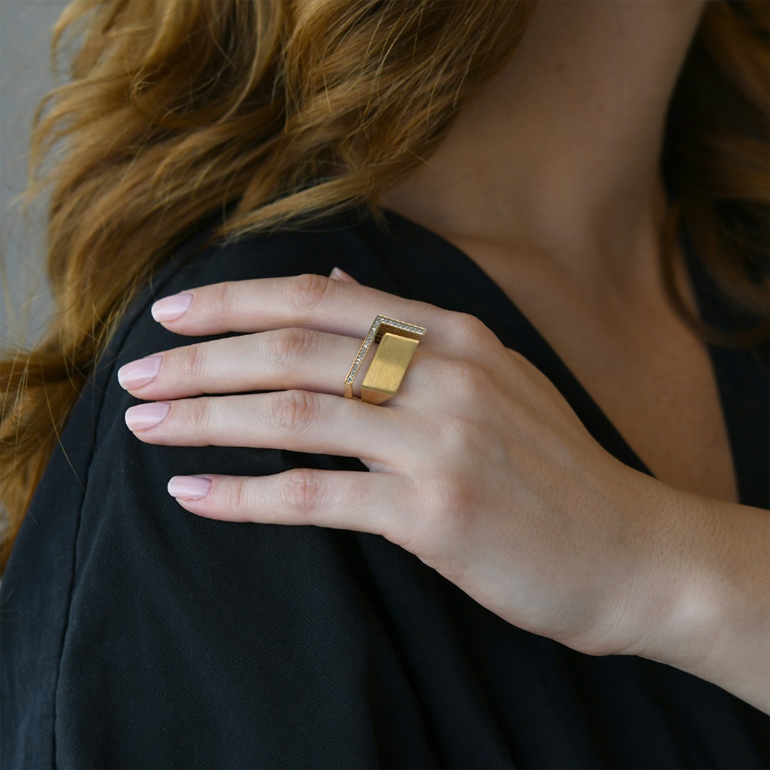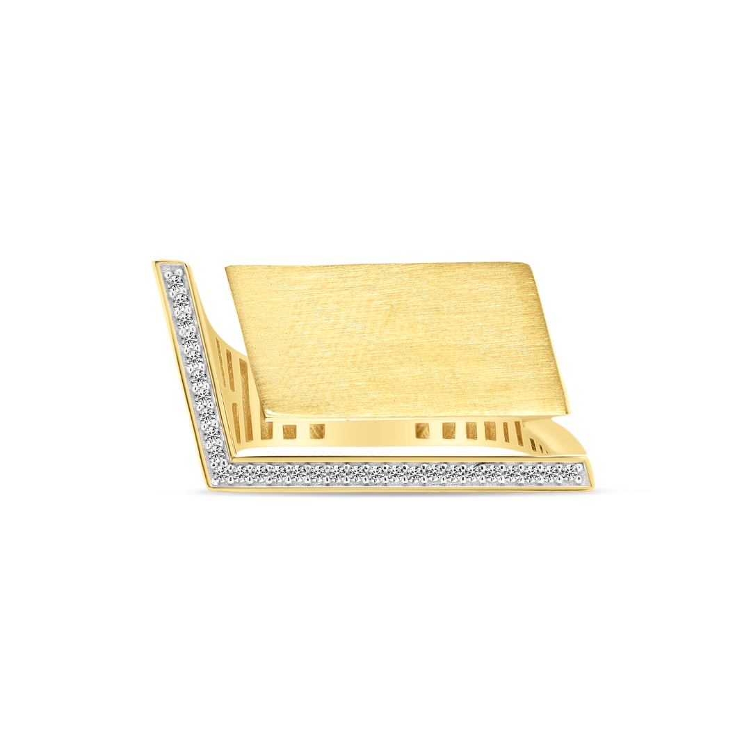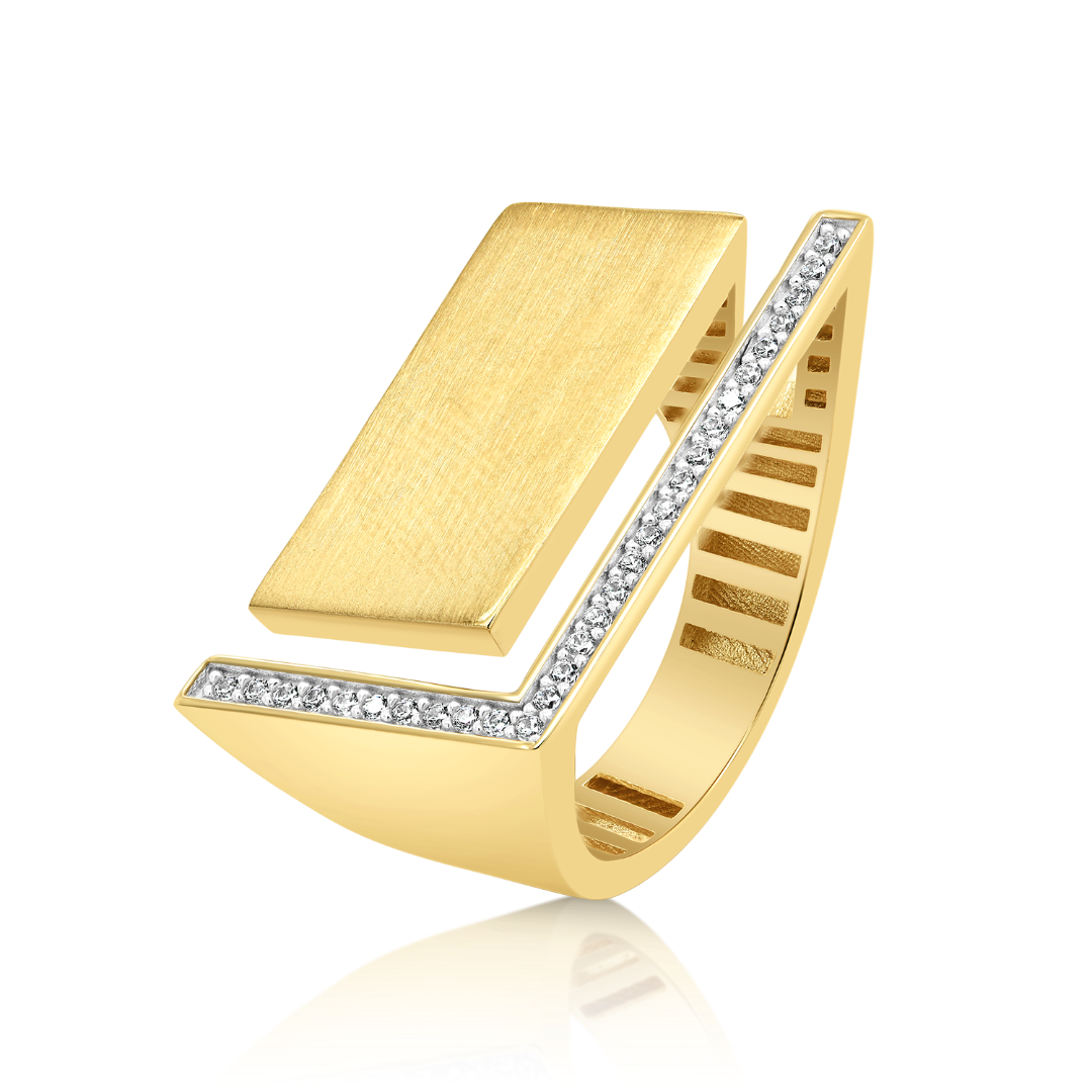 Inel din aur galben de 14K cu element satinat și pietre cubic zirconia.
