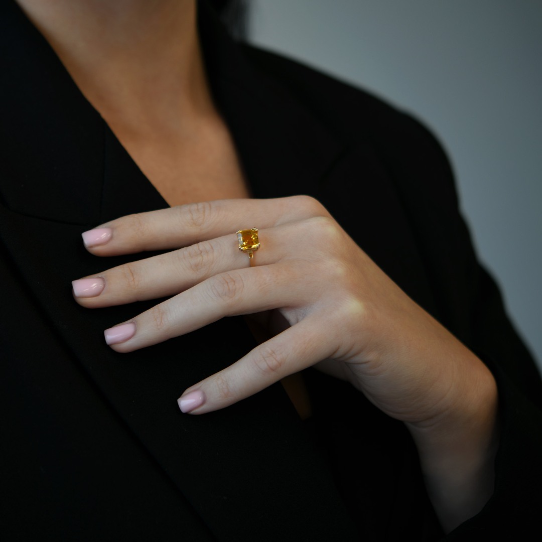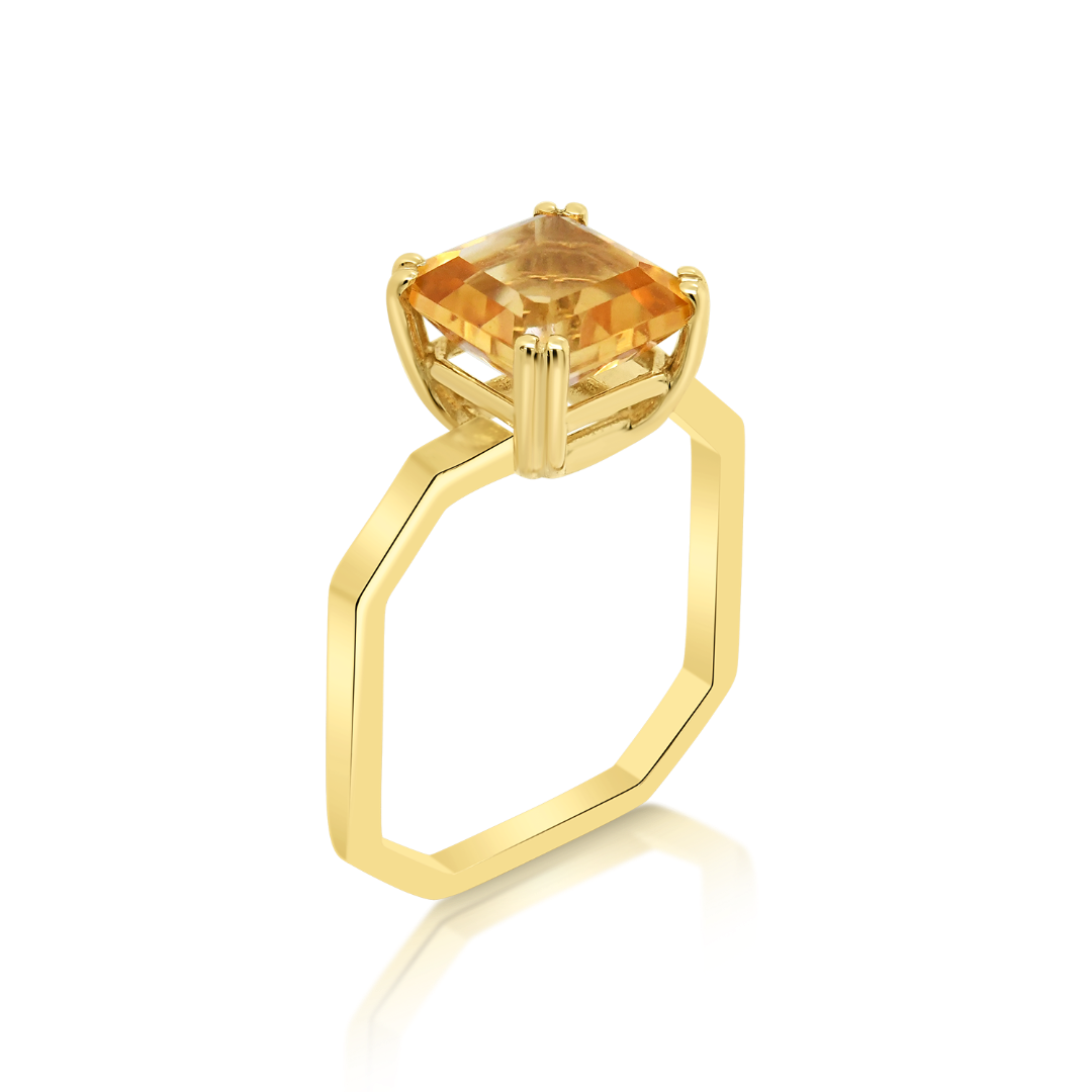 Inel din aur galben de 14K cu Citrin claritate AAA.