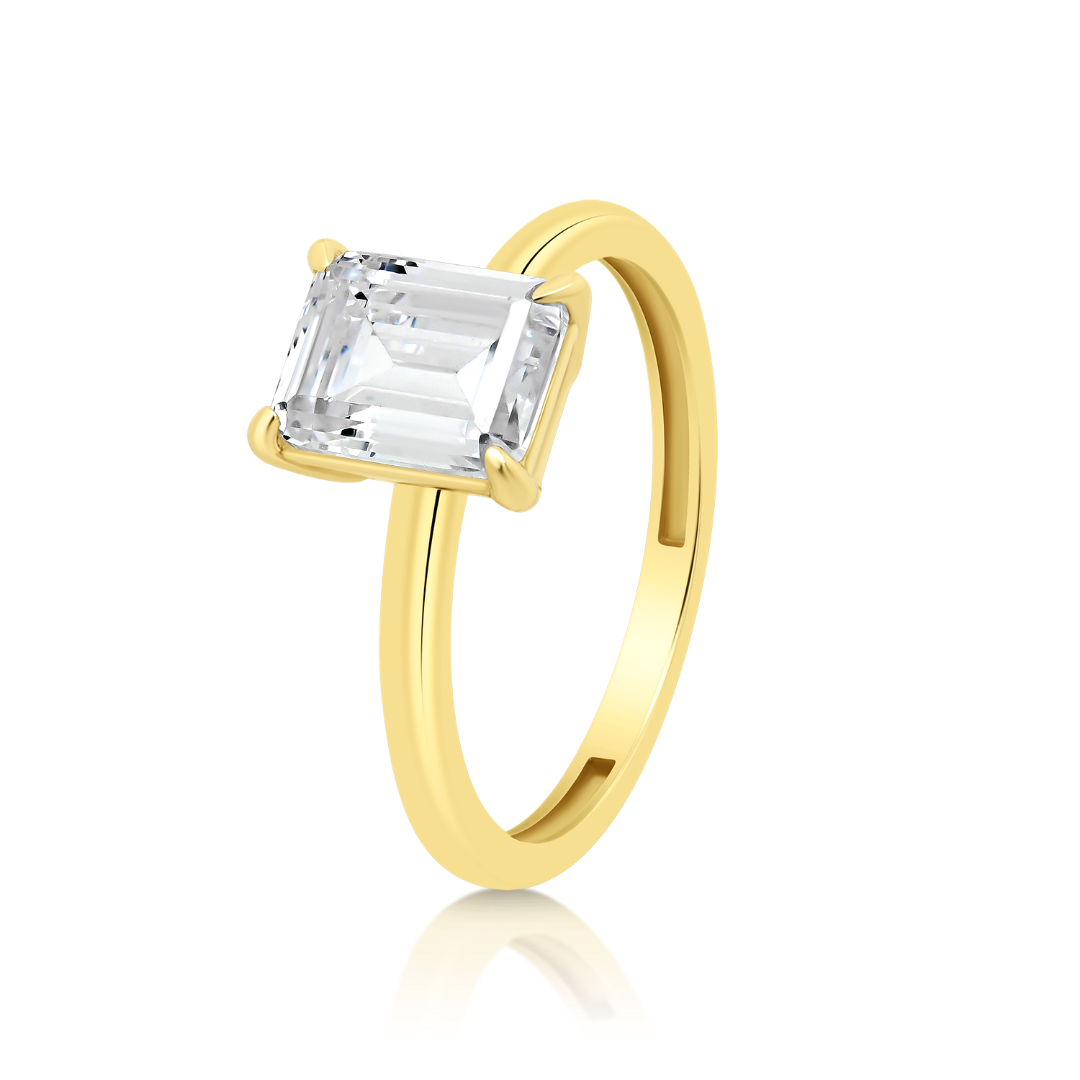 Inel din aur galben de 14K cu piatră cubic zirconia.