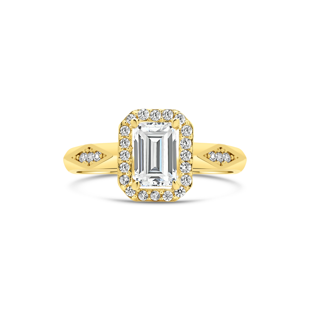 Inel din aur galben de 14K cu pietre cubic zirconia.