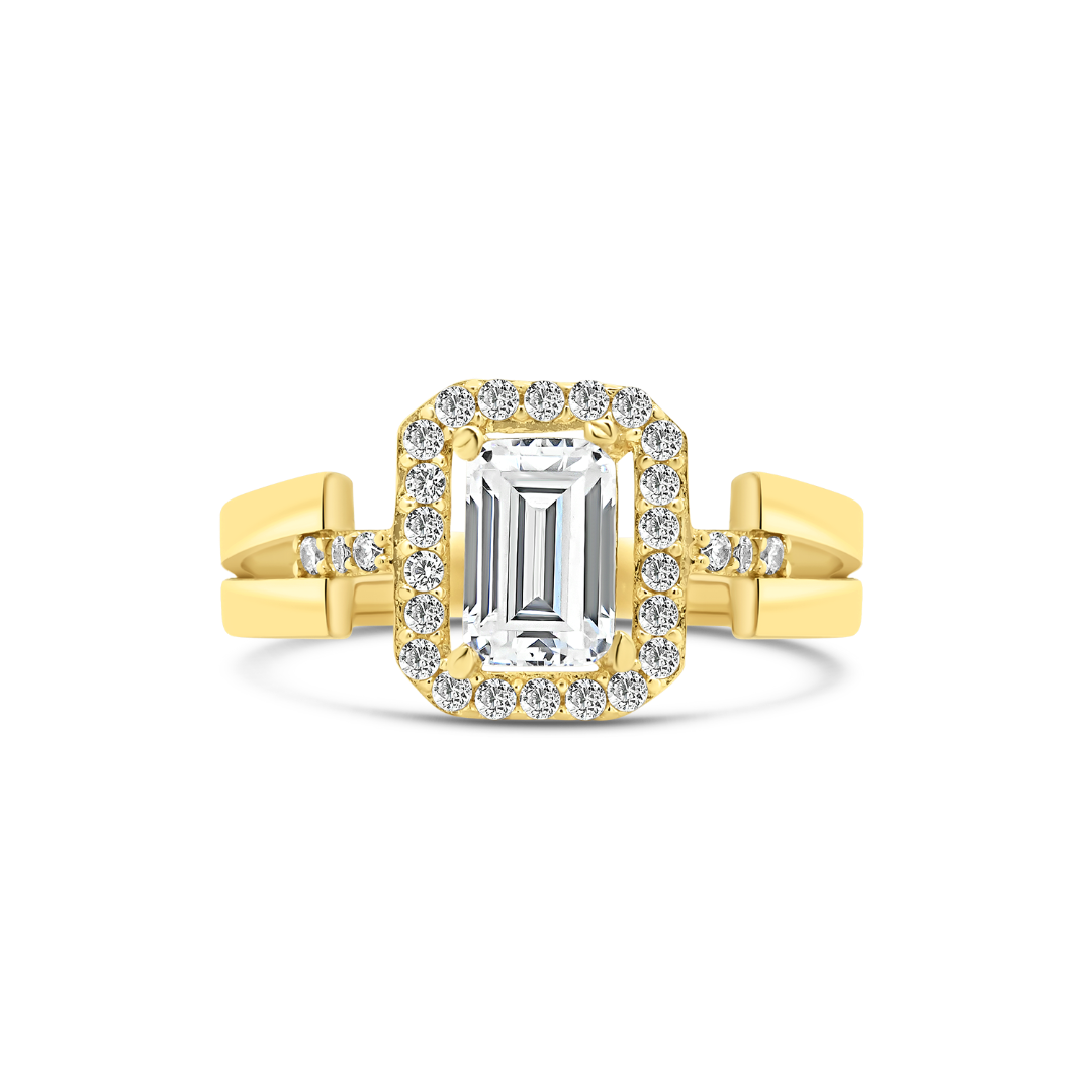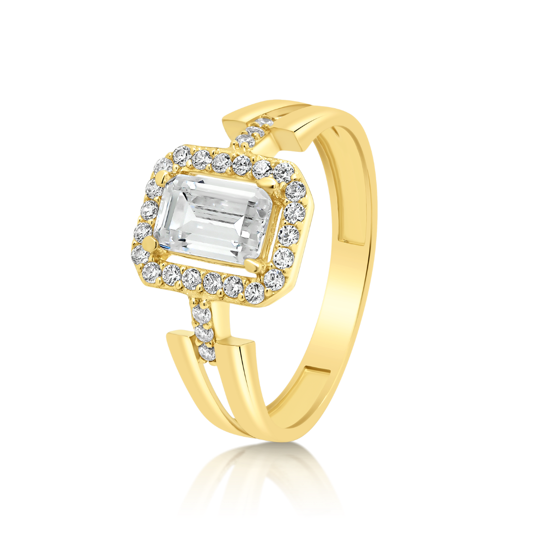 Inel din aur galben de 14K cu pietre cubic zirconia.
