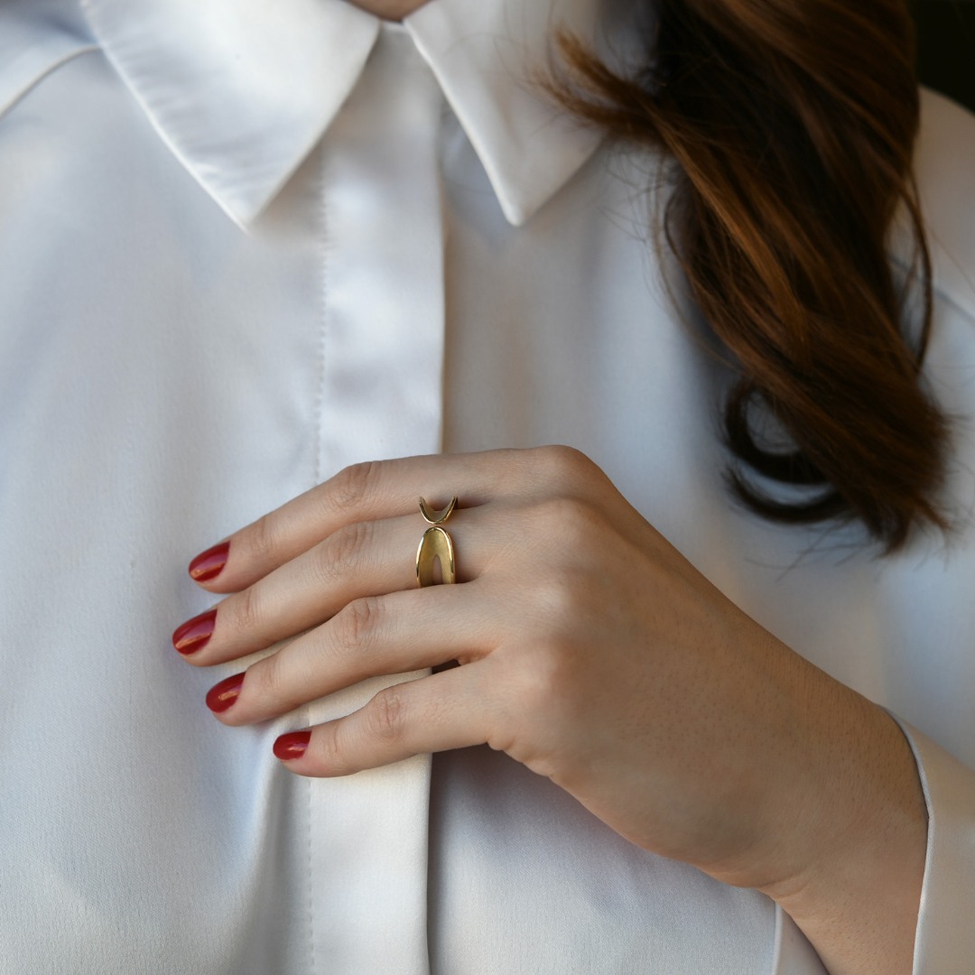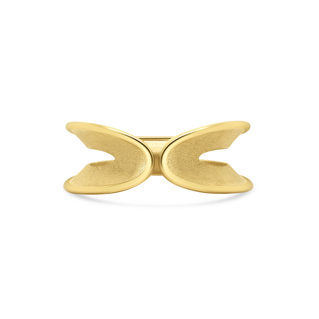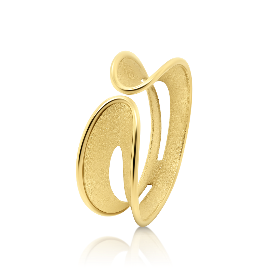 Inel asimetric din aur galben de 14K cu efect satinat.