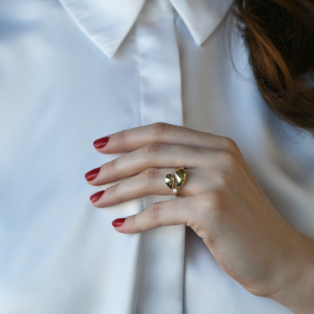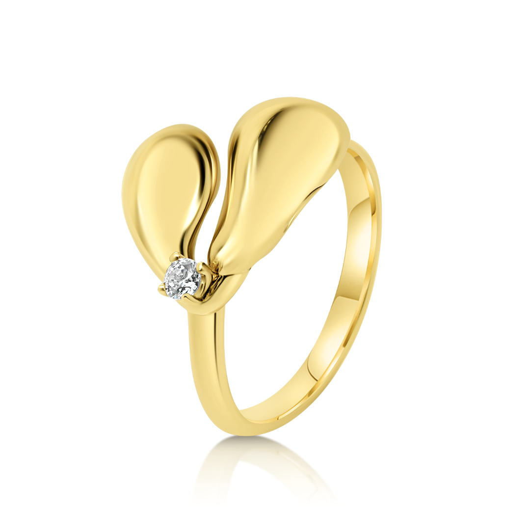 Inel din aur galben de 14K cu piatră cubic zirconia.