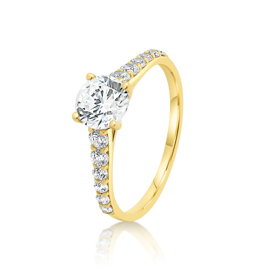 Inel din aur galben de 14K cu pietre cubic zirconia.