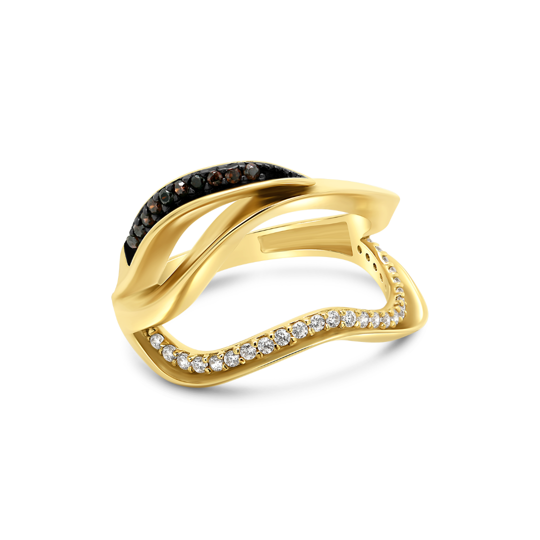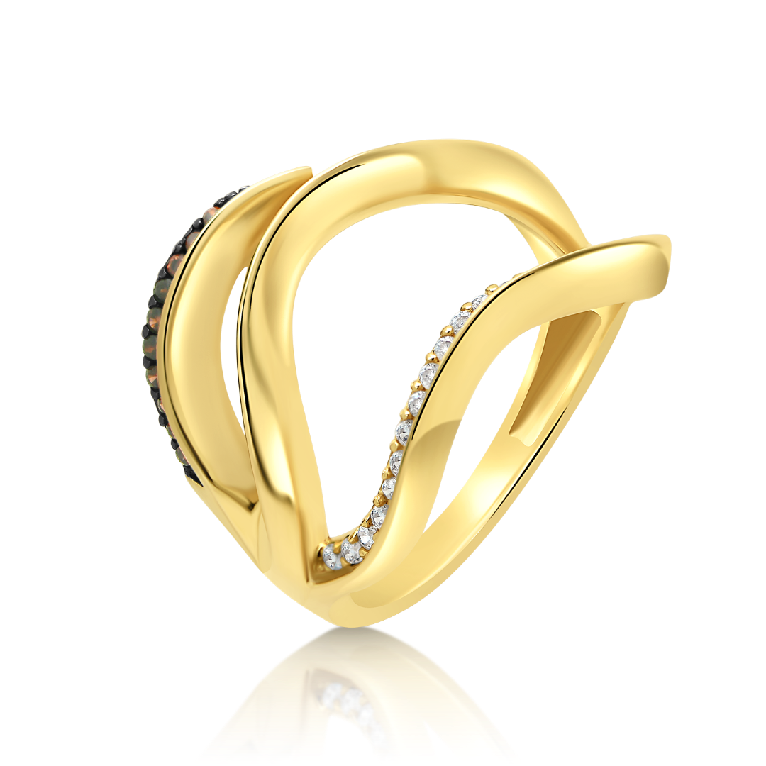Inel din aur galben de 14K cu pietre zirconia negre și incolore.