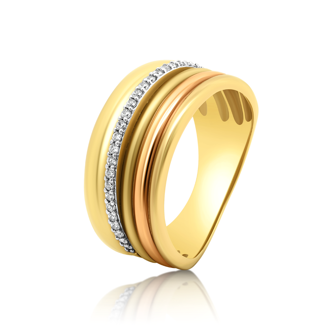 Inel din aur galben de 14K cu pietre cubic zirconia.