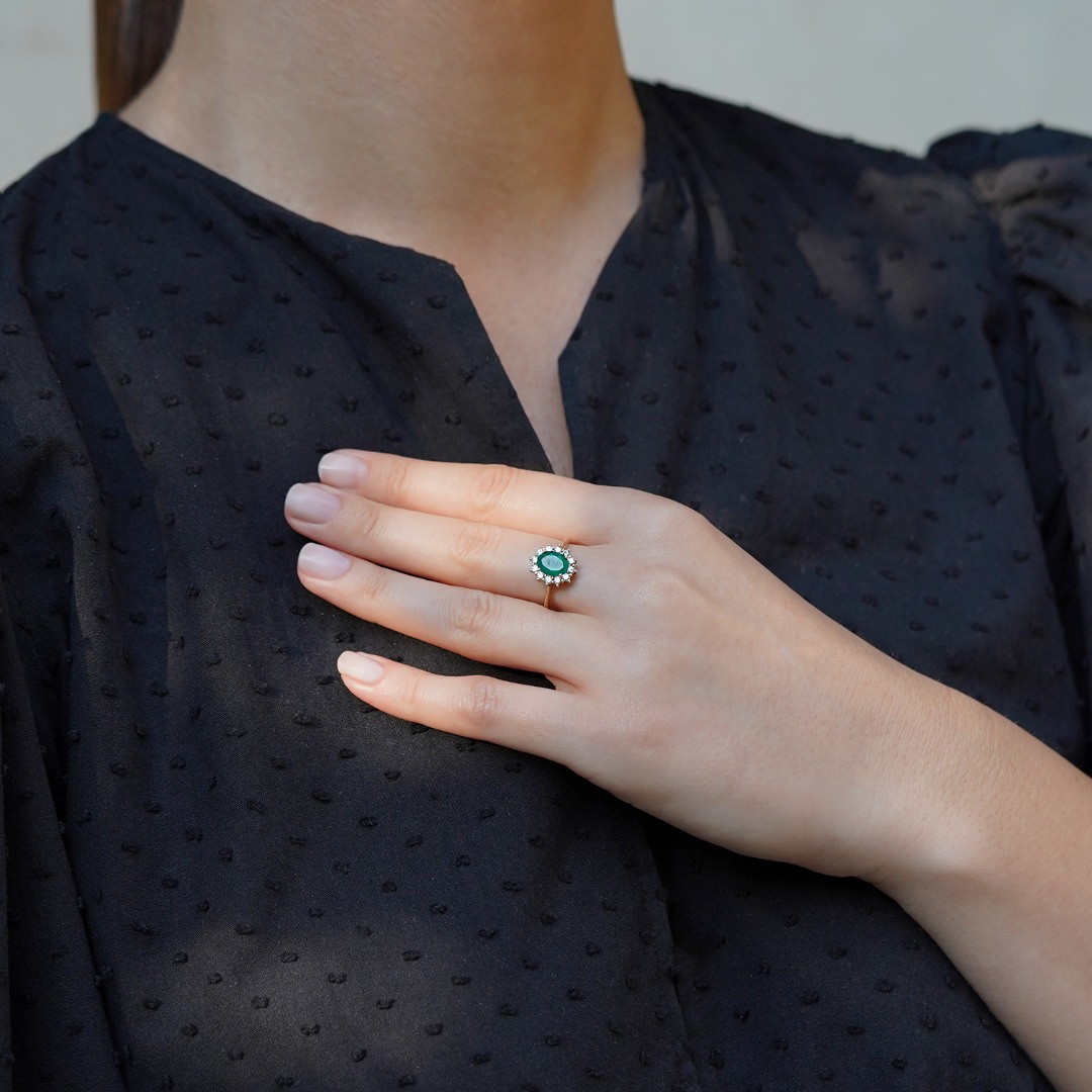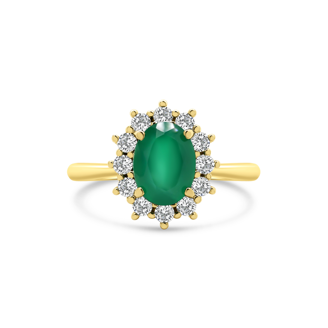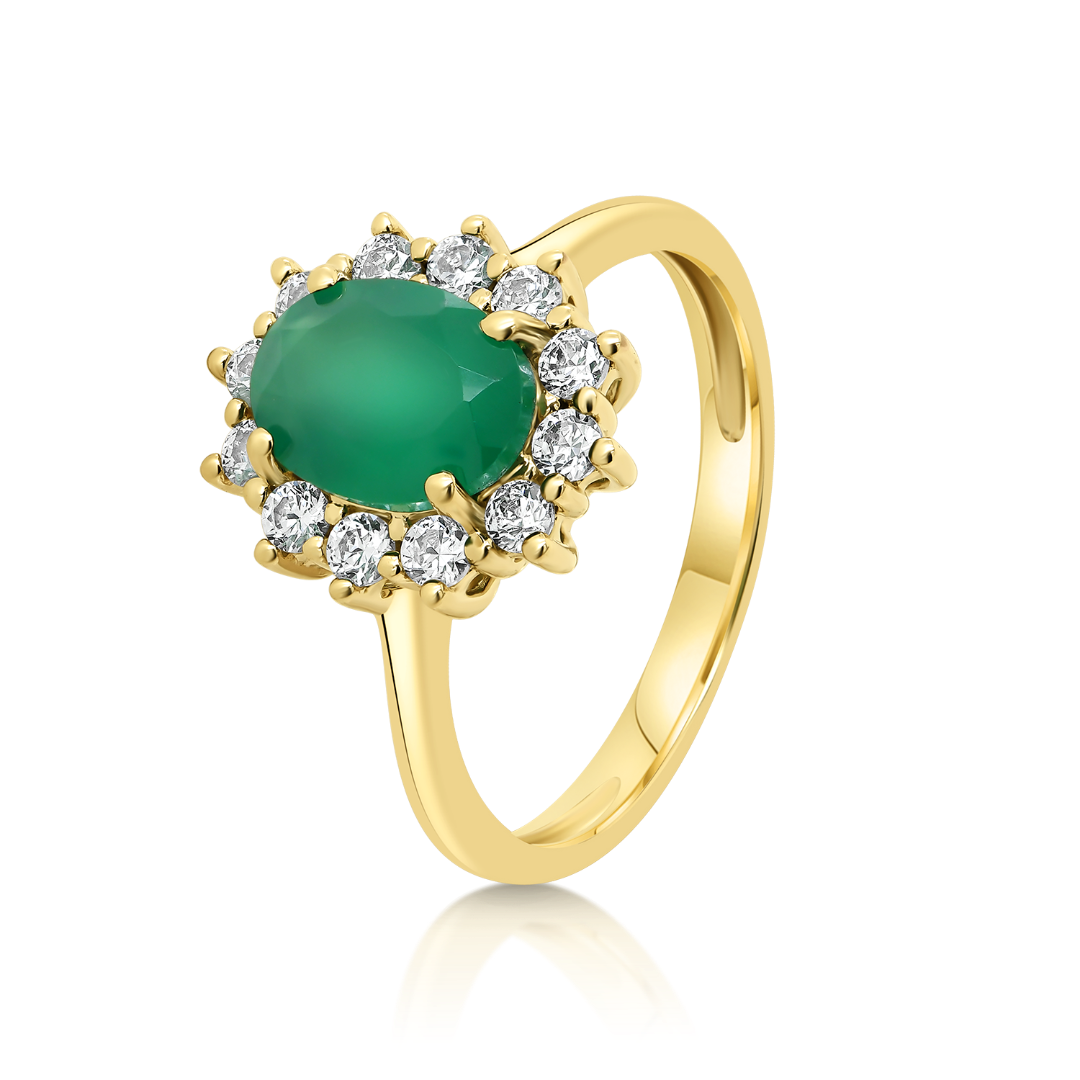 Inel din aur galben de 14K cu Agată verde și zirconia incolore.
