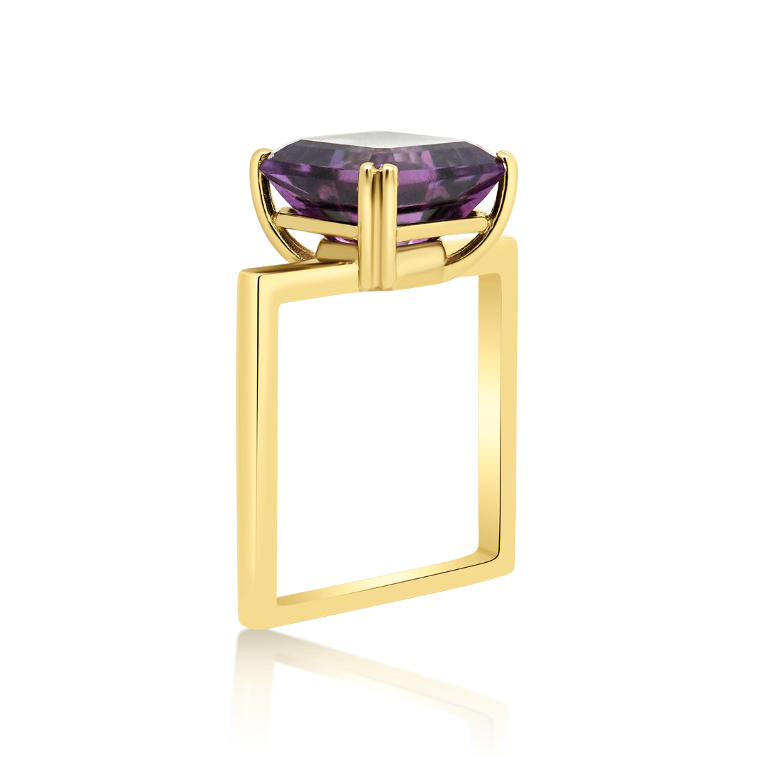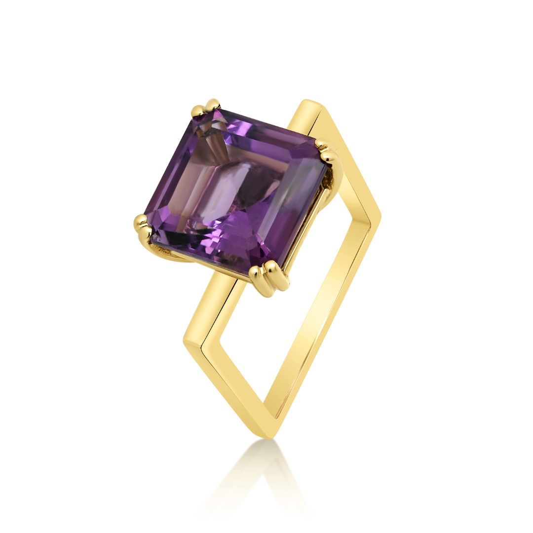 Inel din aur galben de 14K cu Ametist claritate AAA.