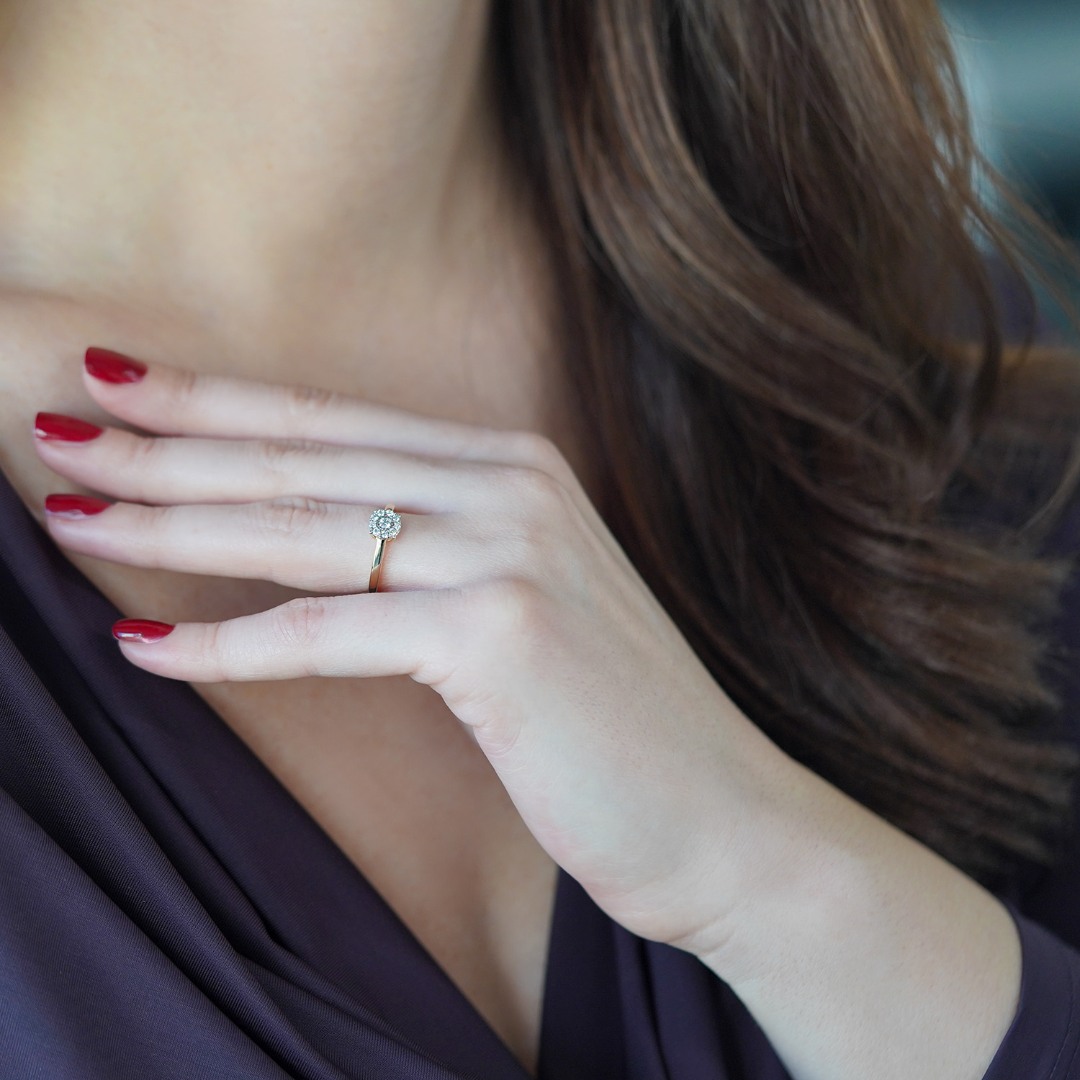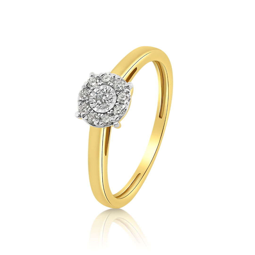 Inel de logodnă din aur galben de 14K cu Diamante naturale brilliant cut de 0.15ct.