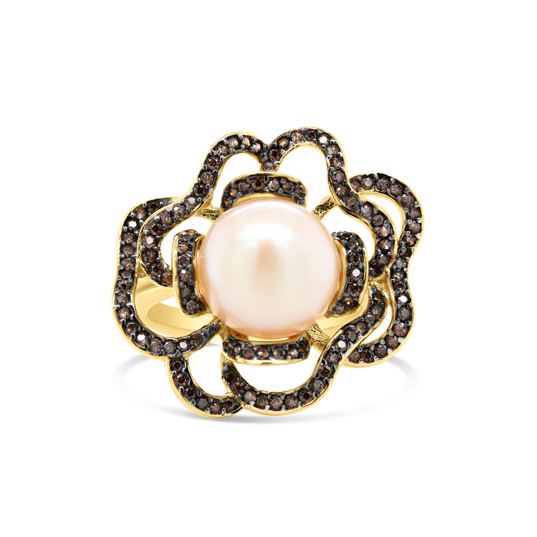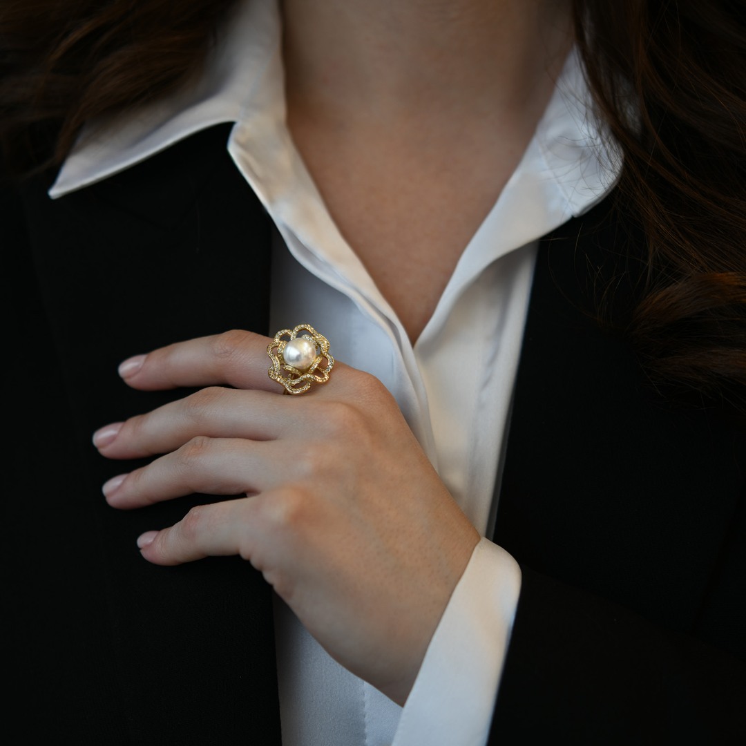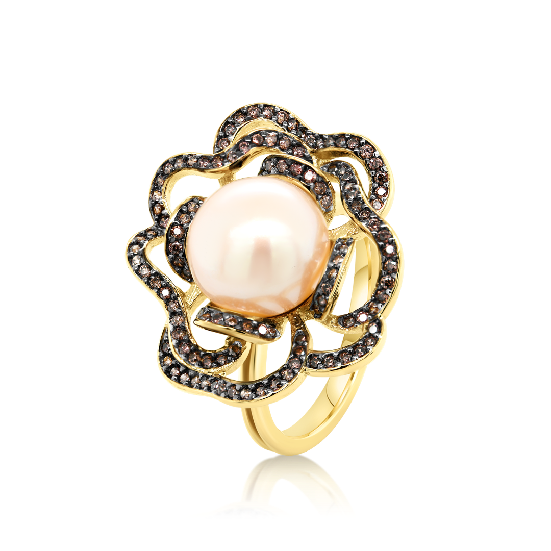 Inel din aur galben de 14K, cu Perlă de cultură și pietre cubic zirconia.
